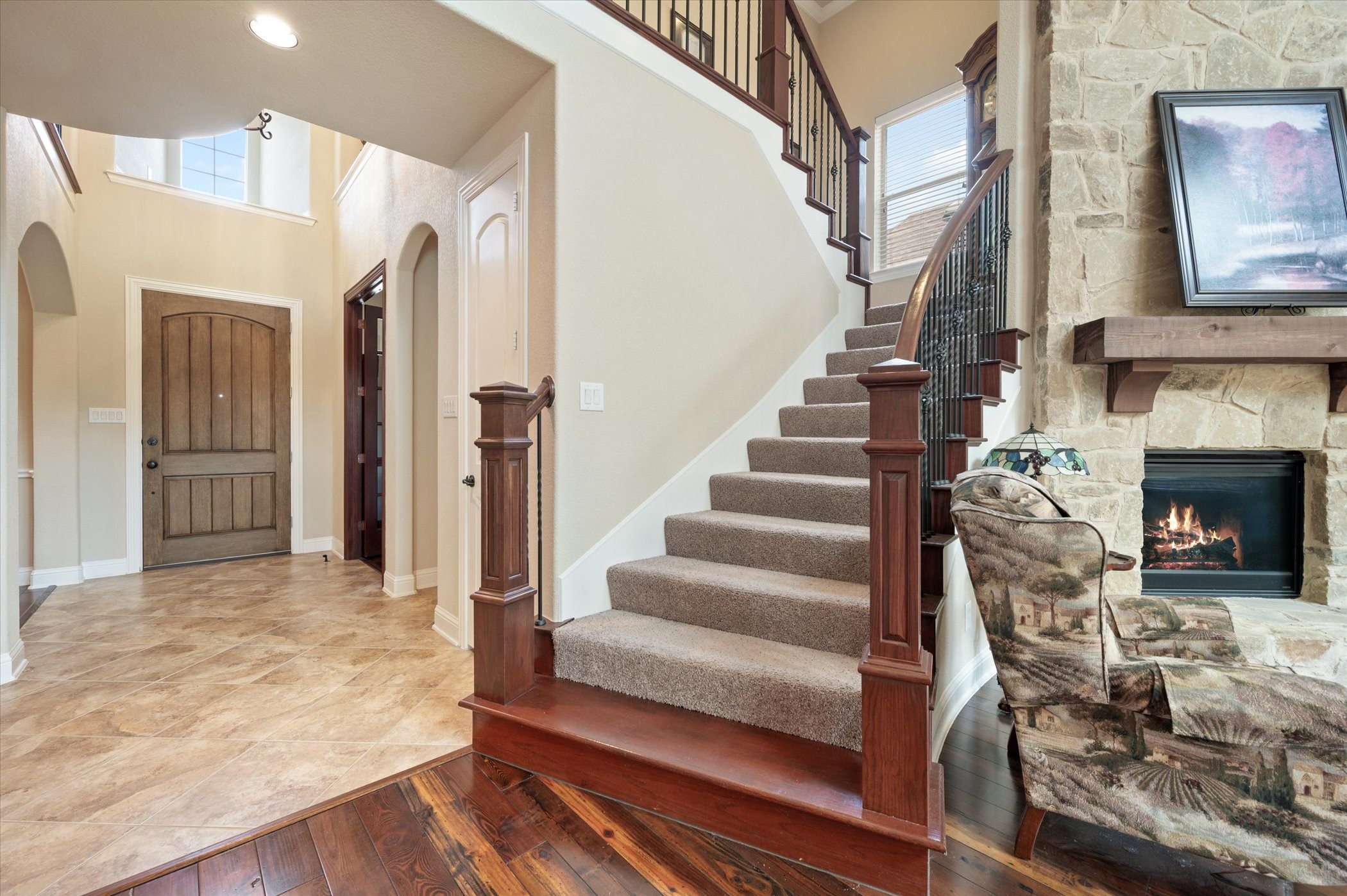 Fireplace | Decorative, Gas Log, Living Room, Raised Hearth, Stone |