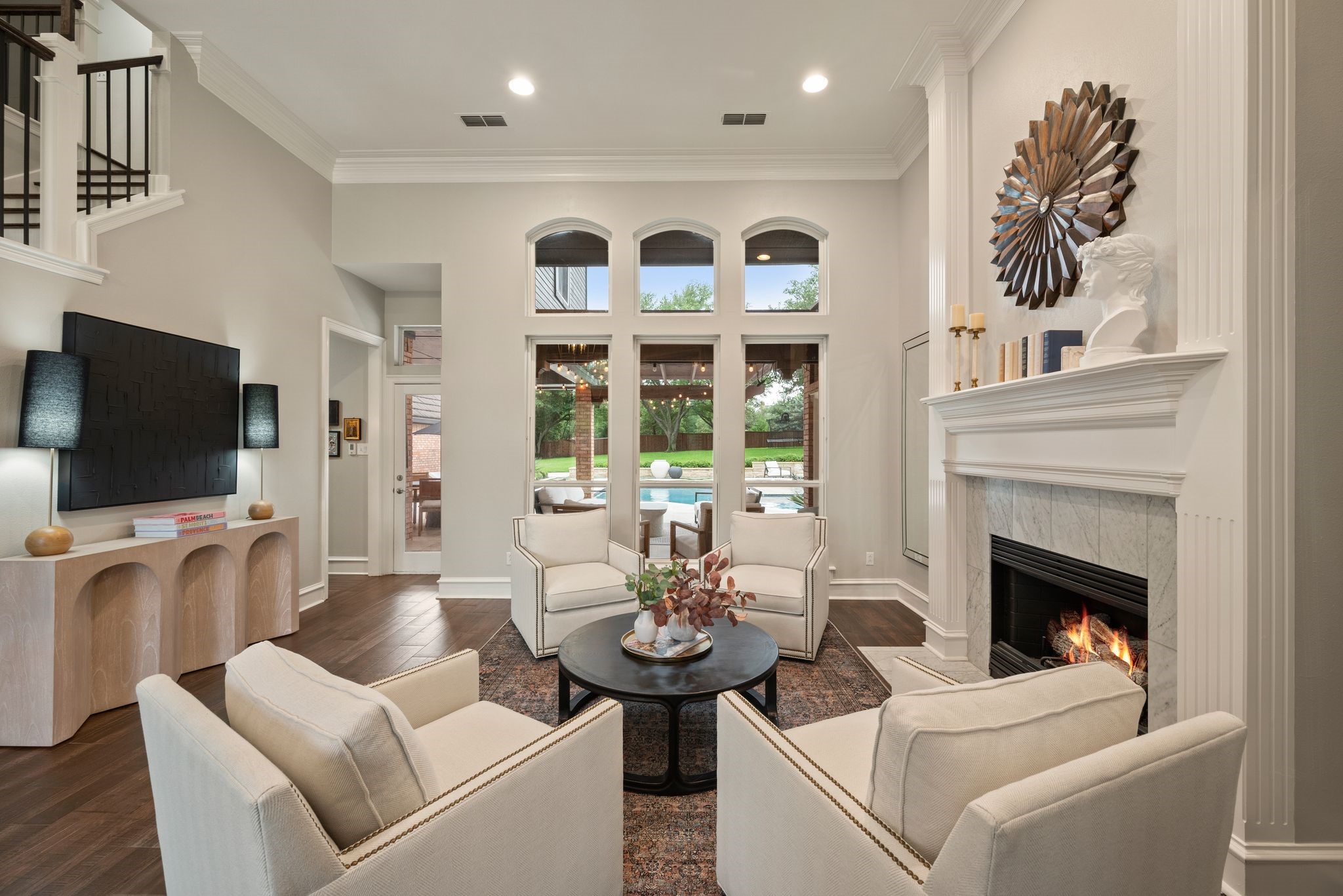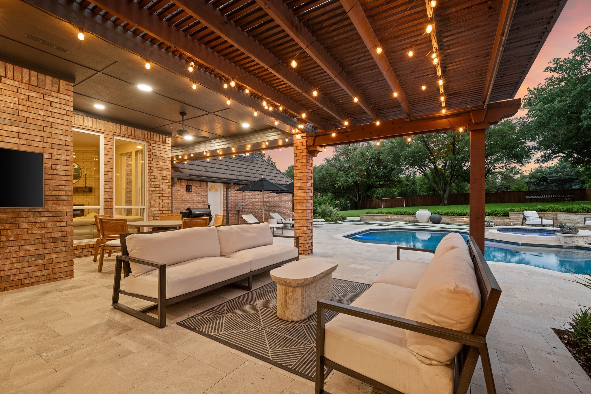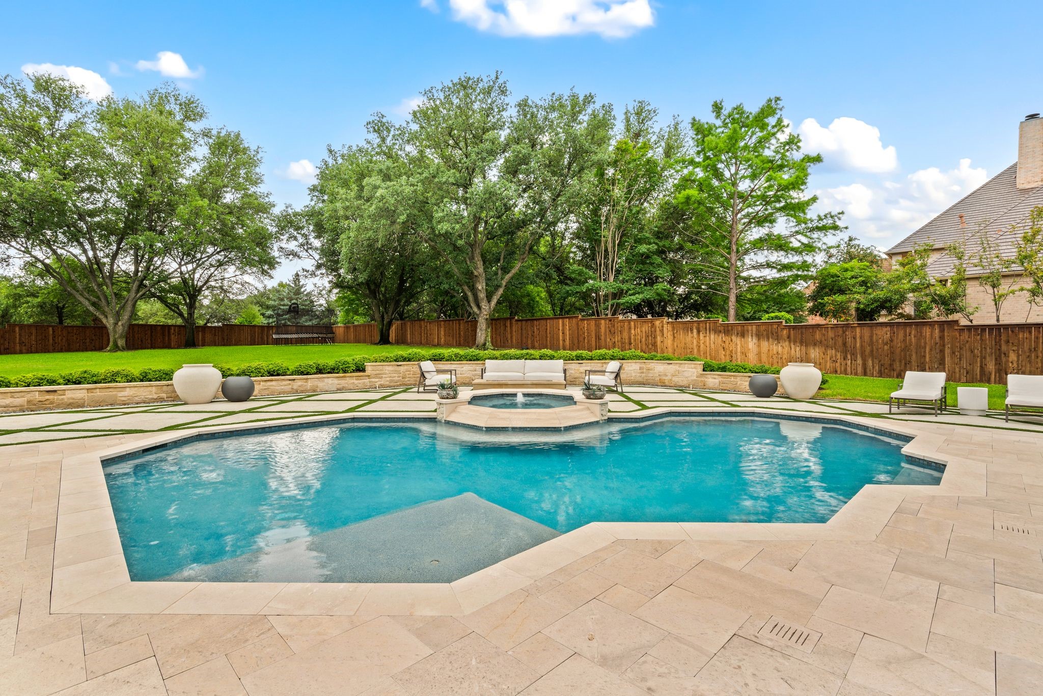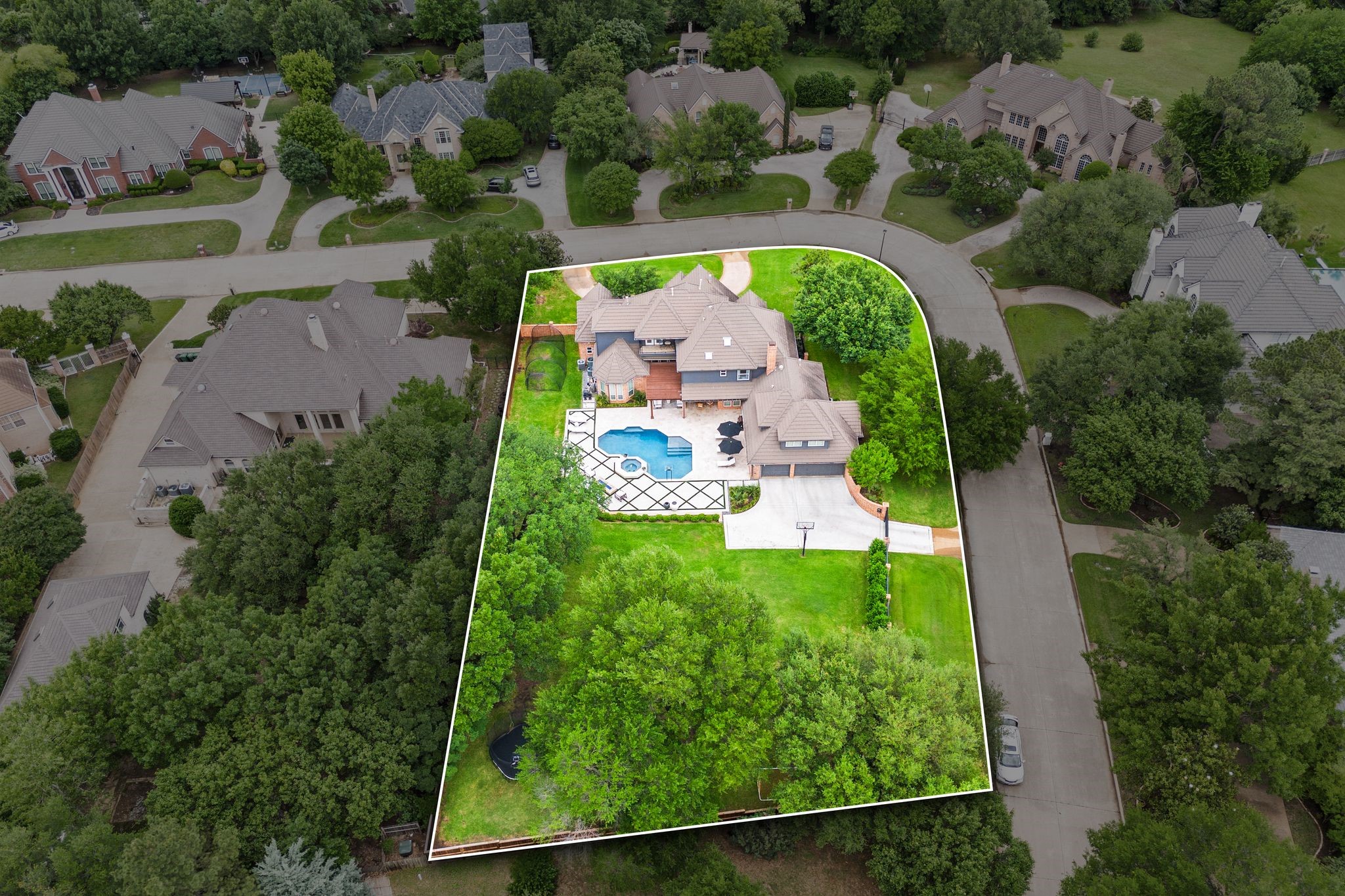 No expense was spared when it comes to the interior & exterior renovations completed for this stunning Colleyville home nestled on a rare 0.8-acre corner lot in the prestigious gated community of The Hills of Central Park. Perfectly located within the highly sought-after GCISD school district and just blocks from premier shopping, dining and DFW Airport, this home offers both convenience and elegance. Step inside and be welcomed by beautiful flooring, custom lighting, plantation shutters, crown molding & fireplace! The private office with custom built-ins offers an ideal environment for working from home or creating your own library retreat. Multiple living areas provide comfort and versatility, while the fully remodeled chef's kitchen shines with high end quartz countertops, dual islands, double oven, gas cooktop, custom cabinets, gorgeous backsplash and tons of natural light! The thoughtful layout includes the primary suite and a secondary bedroom with full bath on the main level! Do not miss the primary bathroom, which has been renovated with updated tile, designer lighting, leathered quartz countertops, waterfall shower with frameless glass & freestanding tub! Upstairs features three additional bedrooms, a spacious game room, and a flex space that could be turned into a wonderful media room, second office or a craft space! The outdoor space is an entertainers dream & feels like your own private resort-style oasis! As you walk into the backyard you will notice the updated pool decking, extensive stonework, travertine hardscape, smart system custom lighting and pool controls, covered patio, pergola, re-designed pool + spa, custom firepit and incredible amount of space roam and play. The board on board cedar fence creating ample privacy completes the package! If you are looking for the MOVE-IN READY Colleyville experience, this home truly has it all!