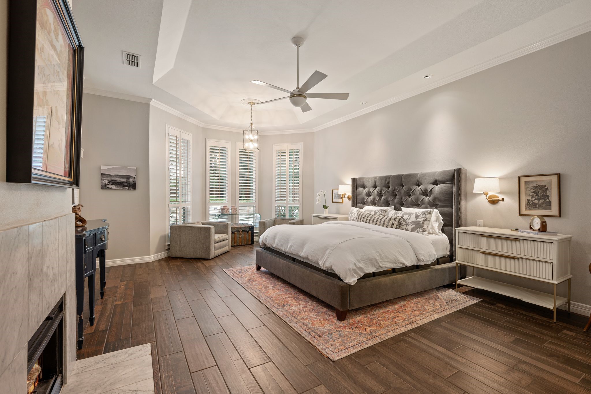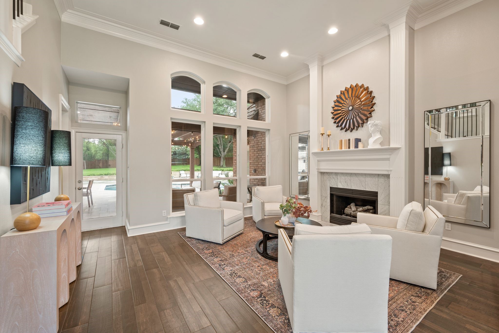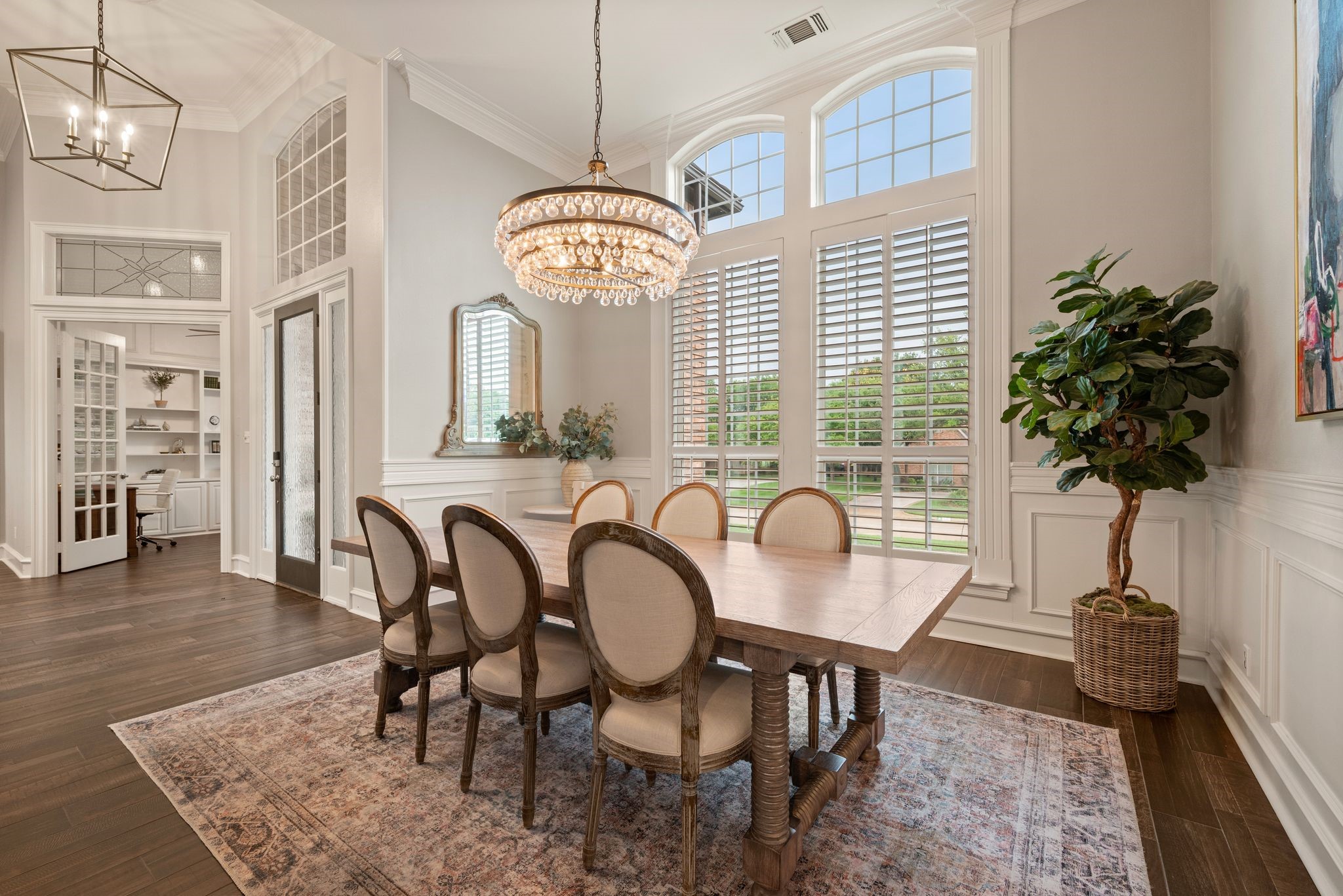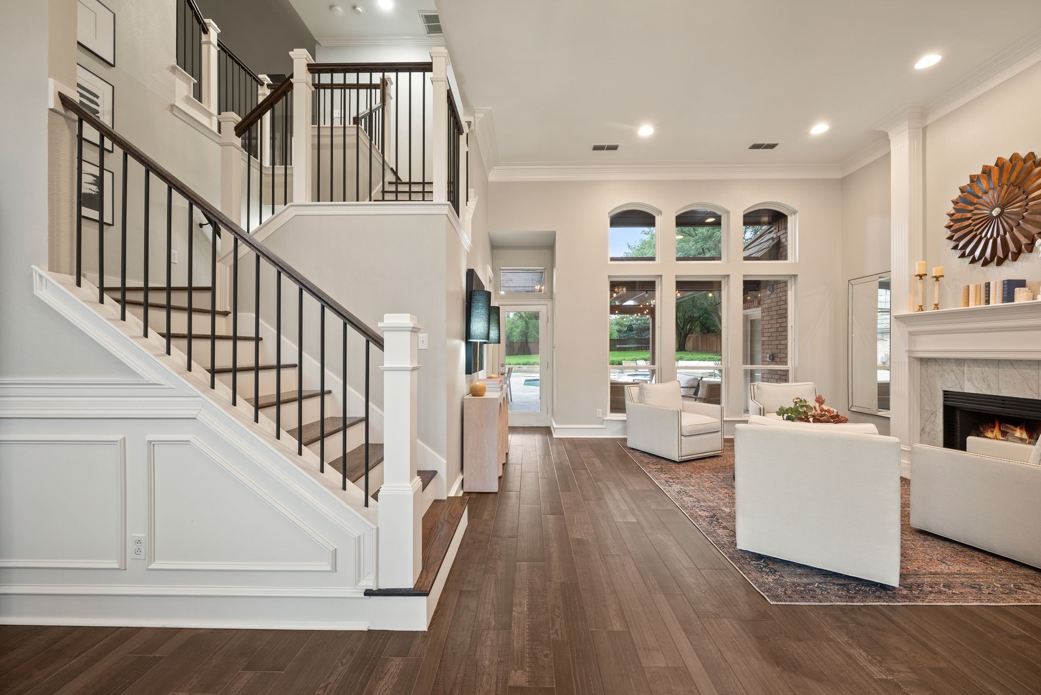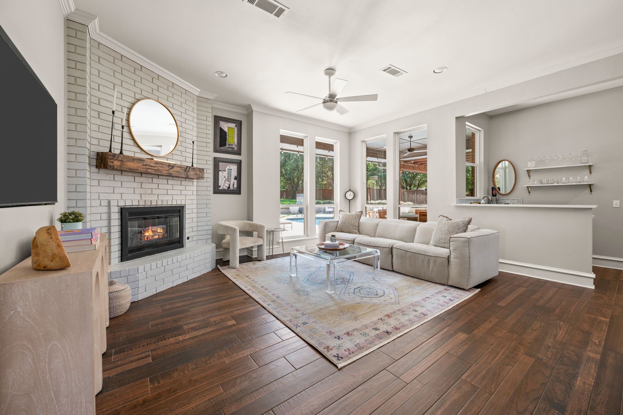No expense was spared when it comes to the interior & exterior renovations completed for this stunning Colleyville home nestled on a rare 0.8-acre corner lot in the prestigious gated community of The Hills of Central Park. Perfectly located within the highly sought-after GCISD school district and just blocks from premier shopping, dining and DFW Airport, this home offers both convenience and elegance. Step inside and be welcomed by beautiful flooring, custom lighting, plantation shutters, crown molding & fireplace! The private office with custom built-ins offers an ideal environment for working from home or creating your own library retreat. Multiple living areas provide comfort and versatility, while the fully remodeled chef's kitchen shines with high end quartz countertops, dual islands, double oven, gas cooktop, custom cabinets, gorgeous backsplash and tons of natural light! The thoughtful layout includes the primary suite and a secondary bedroom with full bath on the main level! Do not miss the primary bathroom, which has been renovated with updated tile, designer lighting, leathered quartz countertops, waterfall shower with frameless glass & freestanding tub! Upstairs features three additional bedrooms, a spacious game room, and a flex space that could be turned into a wonderful media room, second office or a craft space! The outdoor space is an entertainers dream & feels like your own private resort-style oasis! As you walk into the backyard you will notice the updated pool decking, extensive stonework, travertine hardscape, smart system custom lighting and pool controls, covered patio, pergola, re-designed pool + spa, custom firepit and incredible amount of space roam and play. The board on board cedar fence creating ample privacy completes the package! If you are looking for the MOVE-IN READY Colleyville experience, this home truly has it all!