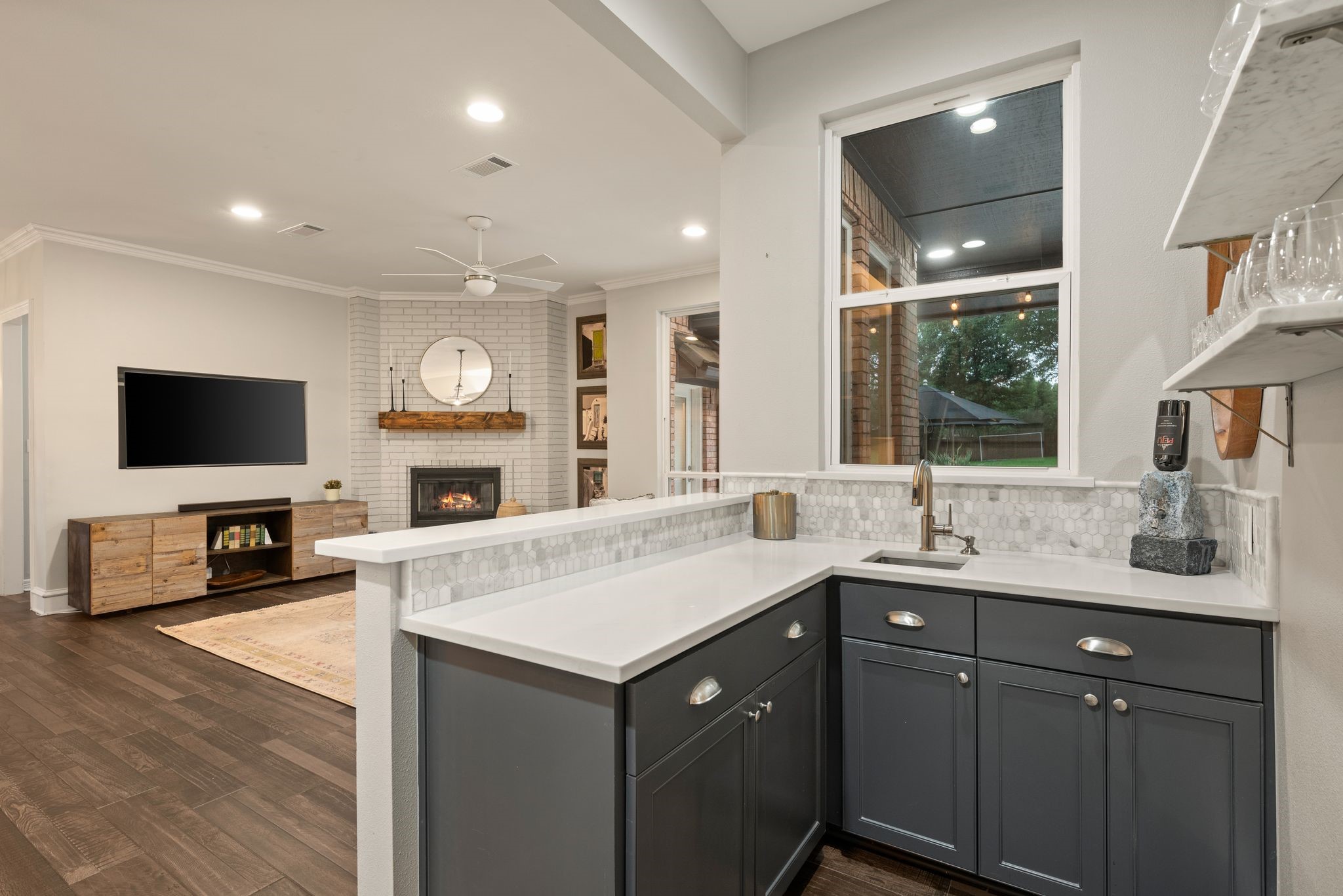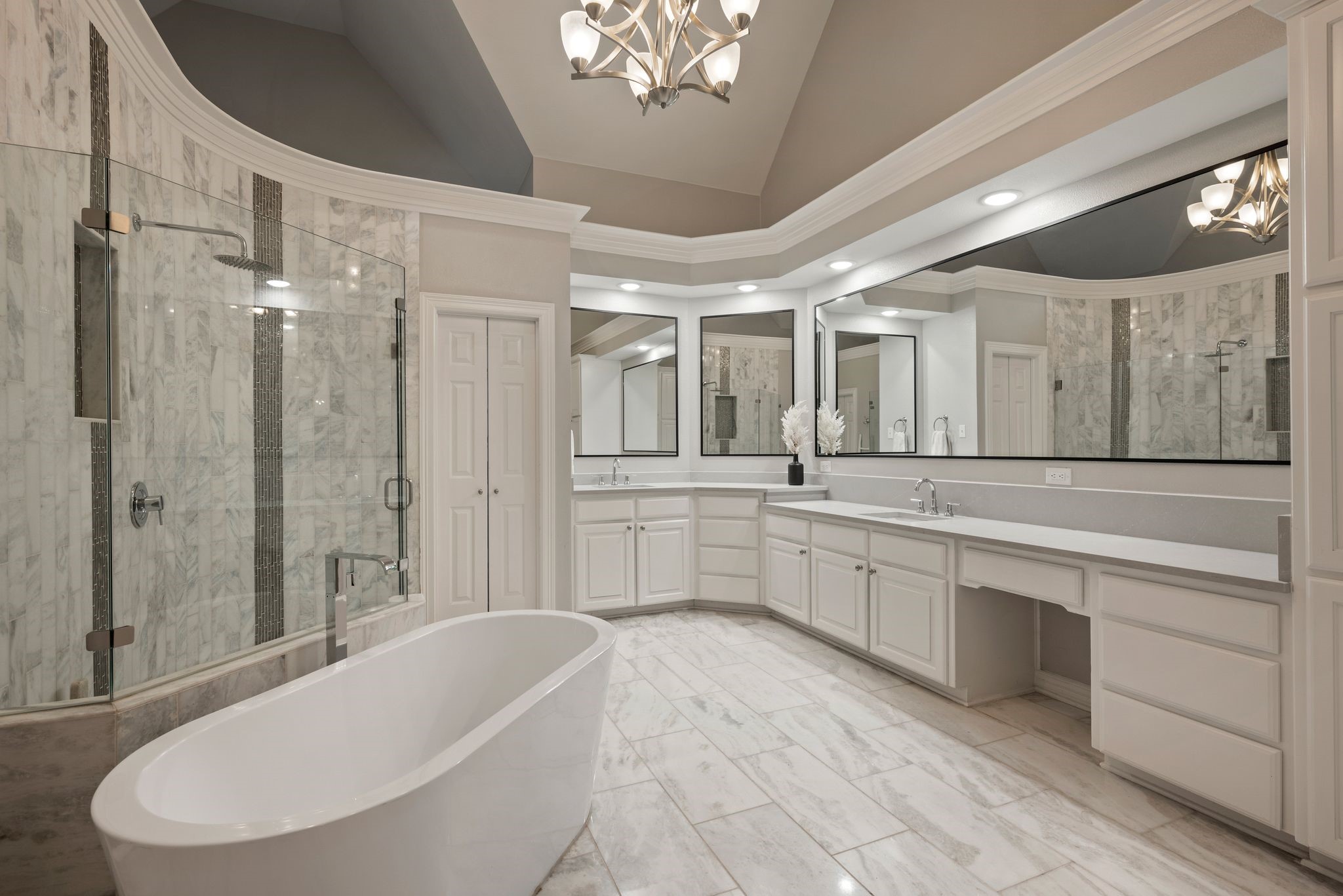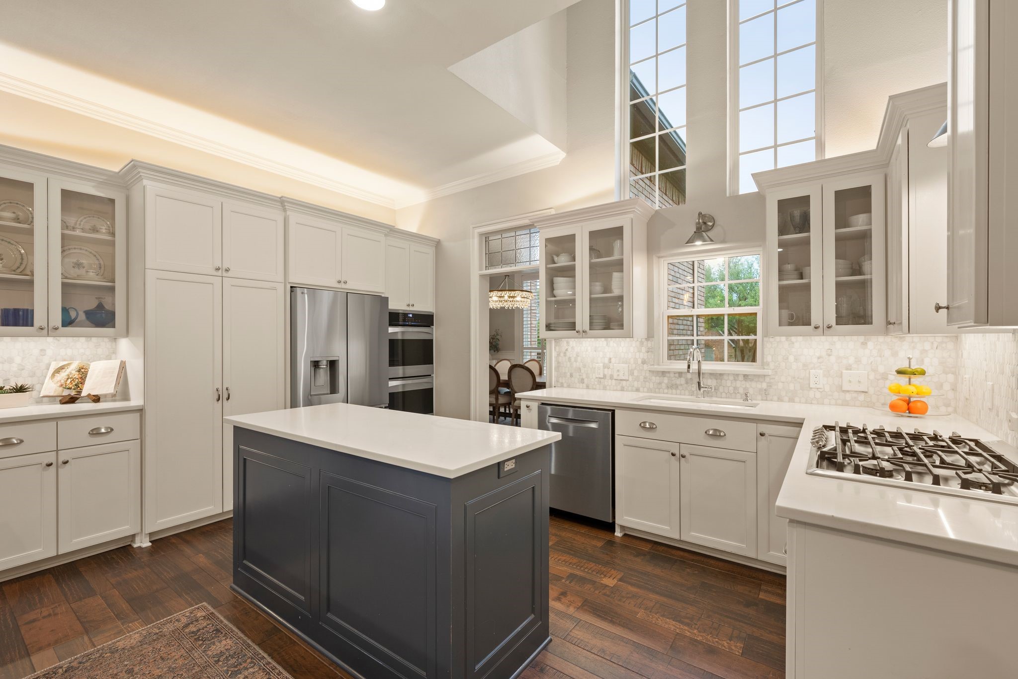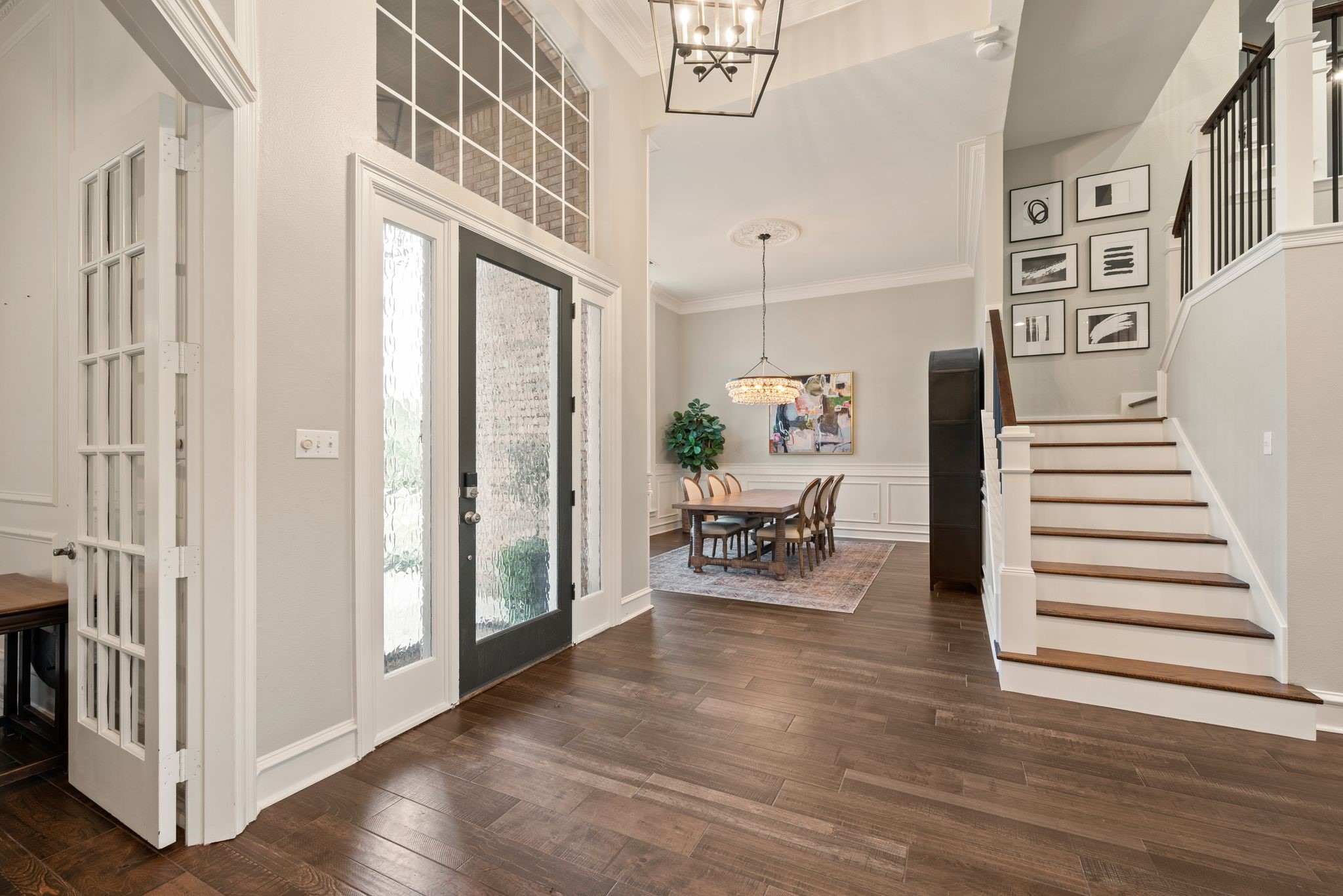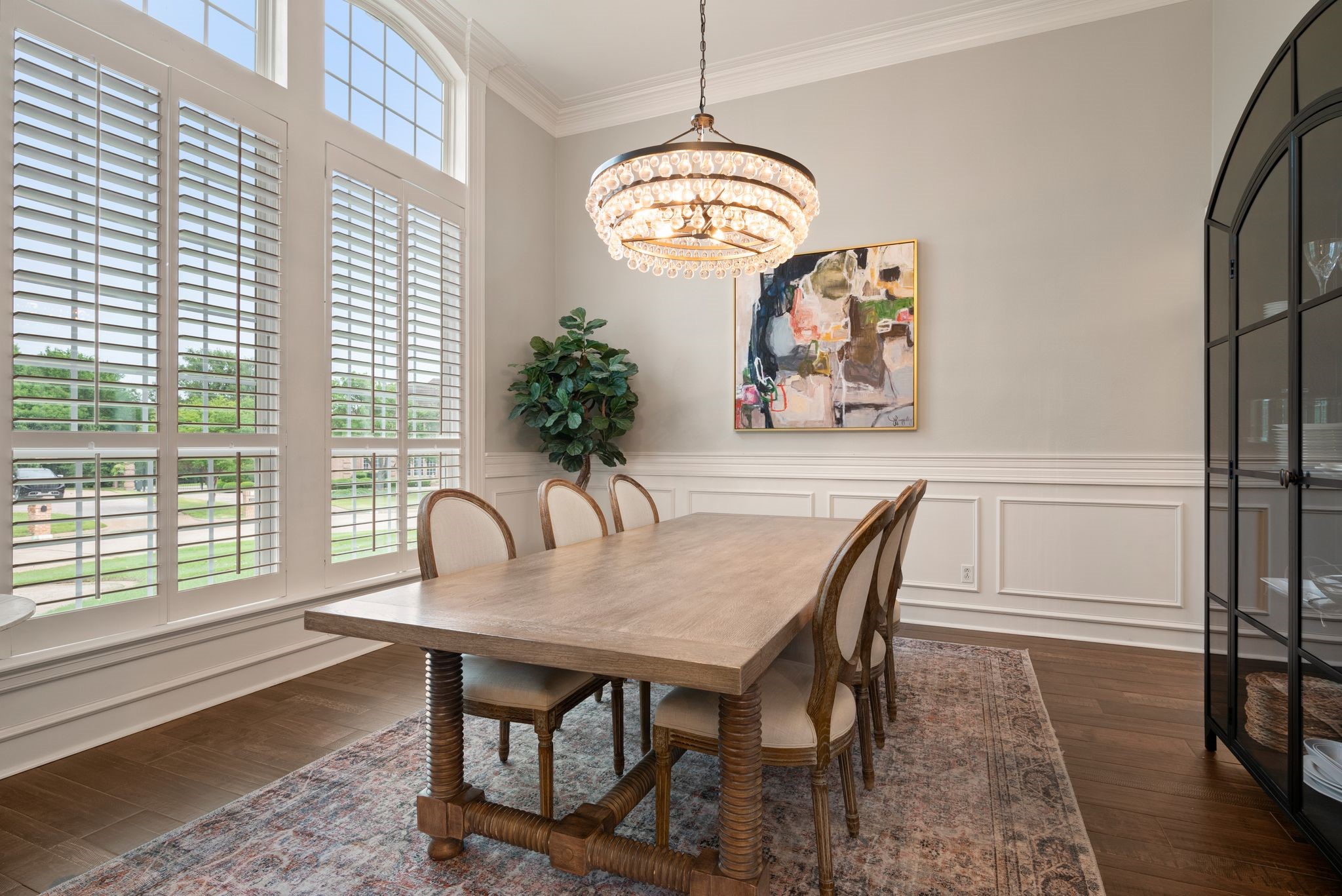 No expense was spared when it comes to the interior & exterior renovations completed for this stunning Colleyville home nestled on a rare 0.8-acre corner lot in the prestigious gated community of The Hills of Central Park. Perfectly located within the highly sought-after GCISD school district and just blocks from premier shopping, dining and DFW Airport, this home offers both convenience and elegance. Step inside and be welcomed by beautiful flooring, custom lighting, plantation shutters, crown molding & fireplace! The private office with custom built-ins offers an ideal environment for working from home or creating your own library retreat. Multiple living areas provide comfort and versatility, while the fully remodeled chef's kitchen shines with high end quartz countertops, dual islands, double oven, gas cooktop, custom cabinets, gorgeous backsplash and tons of natural light! The thoughtful layout includes the primary suite and a secondary bedroom with full bath on the main level! Do not miss the primary bathroom, which has been renovated with updated tile, designer lighting, leathered quartz countertops, waterfall shower with frameless glass & freestanding tub! Upstairs features three additional bedrooms, a spacious game room, and a flex space that could be turned into a wonderful media room, second office or a craft space! The outdoor space is an entertainers dream & feels like your own private resort-style oasis! As you walk into the backyard you will notice the updated pool decking, extensive stonework, travertine hardscape, smart system custom lighting and pool controls, covered patio, pergola, re-designed pool + spa, custom firepit and incredible amount of space roam and play. The board on board cedar fence creating ample privacy completes the package! If you are looking for the MOVE-IN READY Colleyville experience, this home truly has it all!