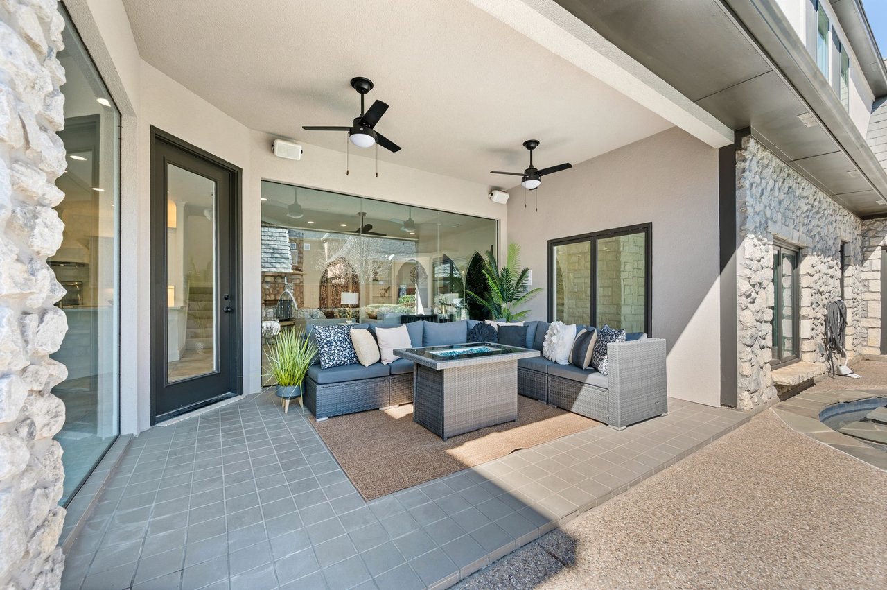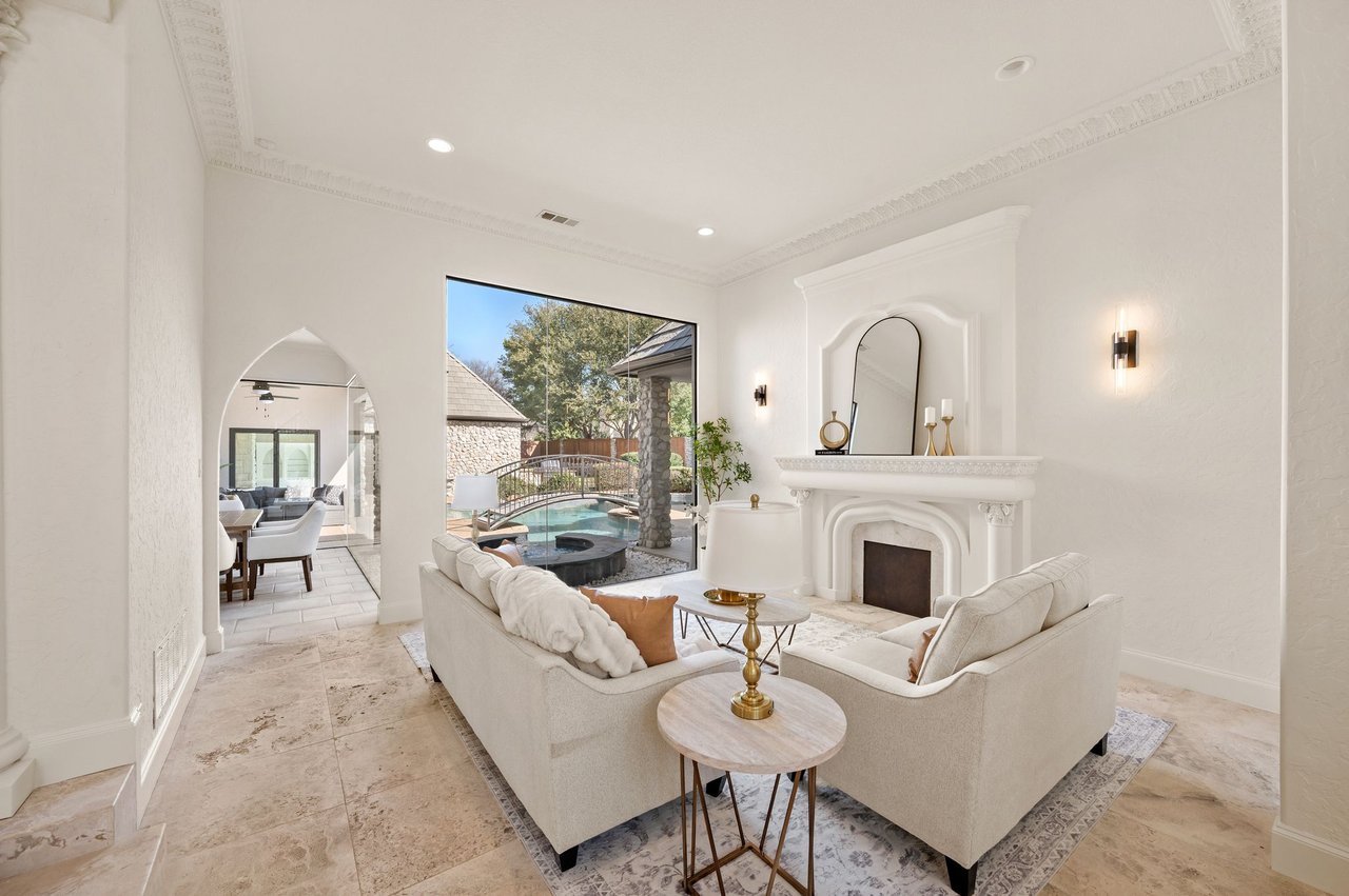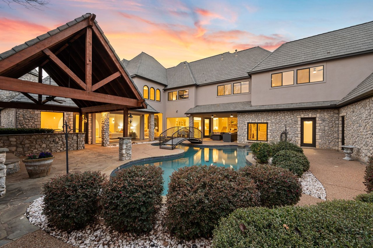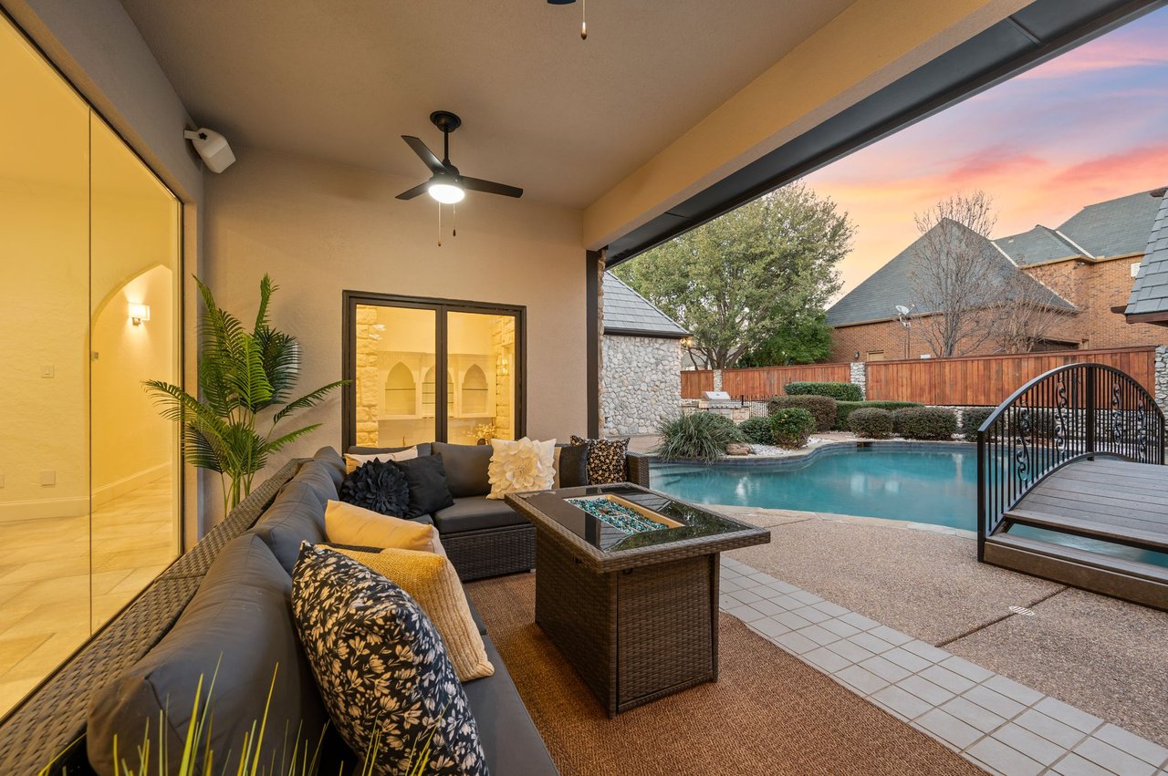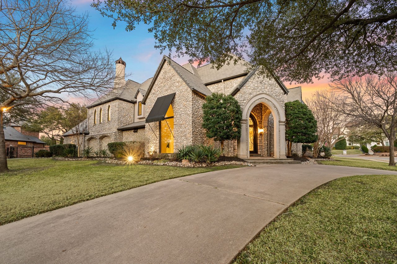 Welcome to this stunning, MOVE-IN READY luxury estate situated on a private half-acre corner lot in the prestigious 24-hour guard-gated community of Montclair Parc. Ideally located just minutes from premier shopping, dining, and a quick commute to DFW Airport. From the moment you enter, the grand wrought-iron staircase, soaring vaulted ceilings, and expansive windows create a breathtaking first impression, filling the home with natural light. Designed for elevated living and effortless entertaining, the first floor offers multiple living and dining spaces, an impressive media room, a walk-in wine room, dual butler’s pantries, and a spacious laundry room complete with built-ins and a pet shower. The chef’s kitchen is a true showpiece, featuring new quartz countertops, a built-in refrigerator, chef-style gas cooktop, and an oversized island perfect for gathering. The private primary suite is thoughtfully located on the main level and showcases a wall of windows overlooking the sparkling pool, a cozy double-sided fireplace, and an expansive custom walk-in closet with built-in shelving and vanity. The spa-inspired primary bath includes a soaking tub, built-in desk, and a luxurious oversized shower with multiple shower heads for a true retreat experience. Upstairs, enjoy a spacious game room with wet bar, a dedicated office with custom built-ins, and a generously sized secondary primary suite, ideal for multigenerational living or extended guests. Step outside to your own private resort. The covered patio overlooks a spectacular pool with a swim-up bar, while a charming bridge leads to a pergola with a fireplace. A built-in grill completes the outdoor living experience, creating the perfect setting for unforgettable gatherings year-round. You don't want to miss your chance for luxury and resort-style living, all in one remarkable property.
