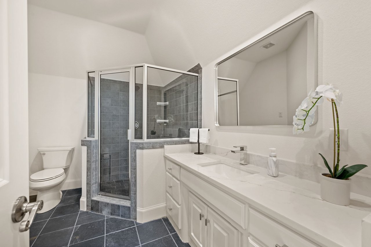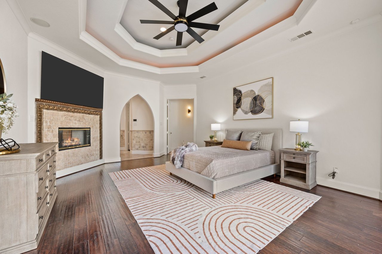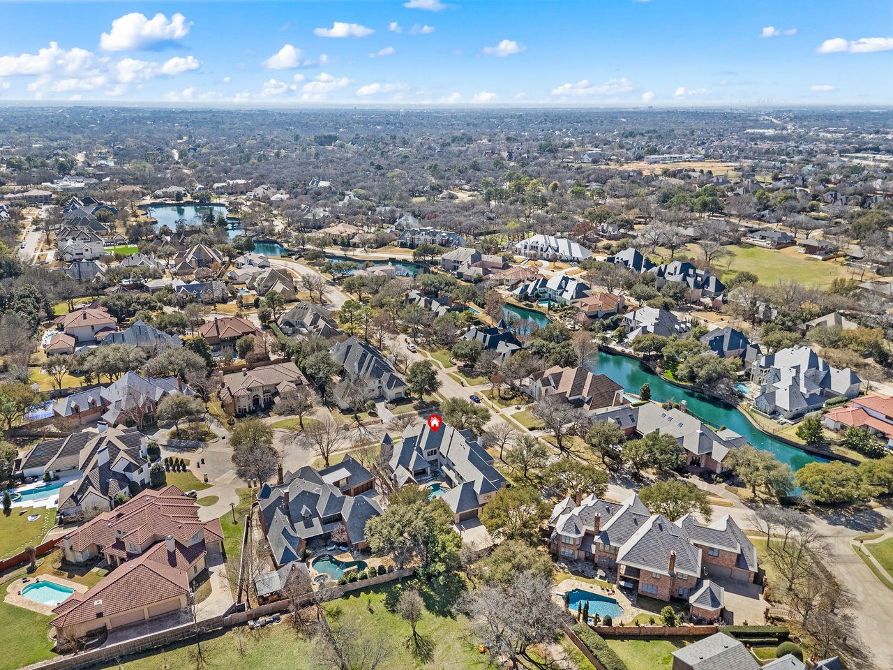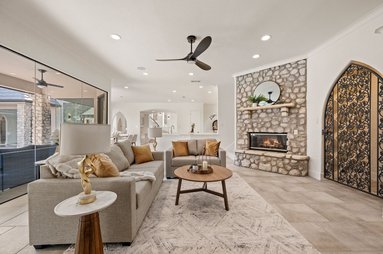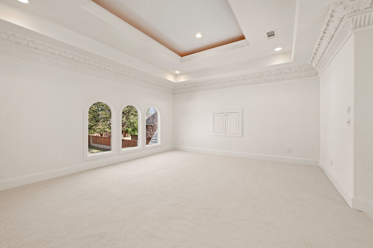 Welcome to this stunning, MOVE-IN READY luxury estate situated on a private half-acre corner lot in the prestigious 24-hour guard-gated community of Montclair Parc. Ideally located just minutes from premier shopping, dining, and a quick commute to DFW Airport. From the moment you enter, the grand wrought-iron staircase, soaring vaulted ceilings, and expansive windows create a breathtaking first impression, filling the home with natural light. Designed for elevated living and effortless entertaining, the first floor offers multiple living and dining spaces, an impressive media room, a walk-in wine room, dual butler’s pantries, and a spacious laundry room complete with built-ins and a pet shower. The chef’s kitchen is a true showpiece, featuring new quartz countertops, a built-in refrigerator, chef-style gas cooktop, and an oversized island perfect for gathering. The private primary suite is thoughtfully located on the main level and showcases a wall of windows overlooking the sparkling pool, a cozy double-sided fireplace, and an expansive custom walk-in closet with built-in shelving and vanity. The spa-inspired primary bath includes a soaking tub, built-in desk, and a luxurious oversized shower with multiple shower heads for a true retreat experience. Upstairs, enjoy a spacious game room with wet bar, a dedicated office with custom built-ins, and a generously sized secondary primary suite, ideal for multigenerational living or extended guests. Step outside to your own private resort. The covered patio overlooks a spectacular pool with a swim-up bar, while a charming bridge leads to a pergola with a fireplace. A built-in grill completes the outdoor living experience, creating the perfect setting for unforgettable gatherings year-round. You don't want to miss your chance for luxury and resort-style living, all in one remarkable property.