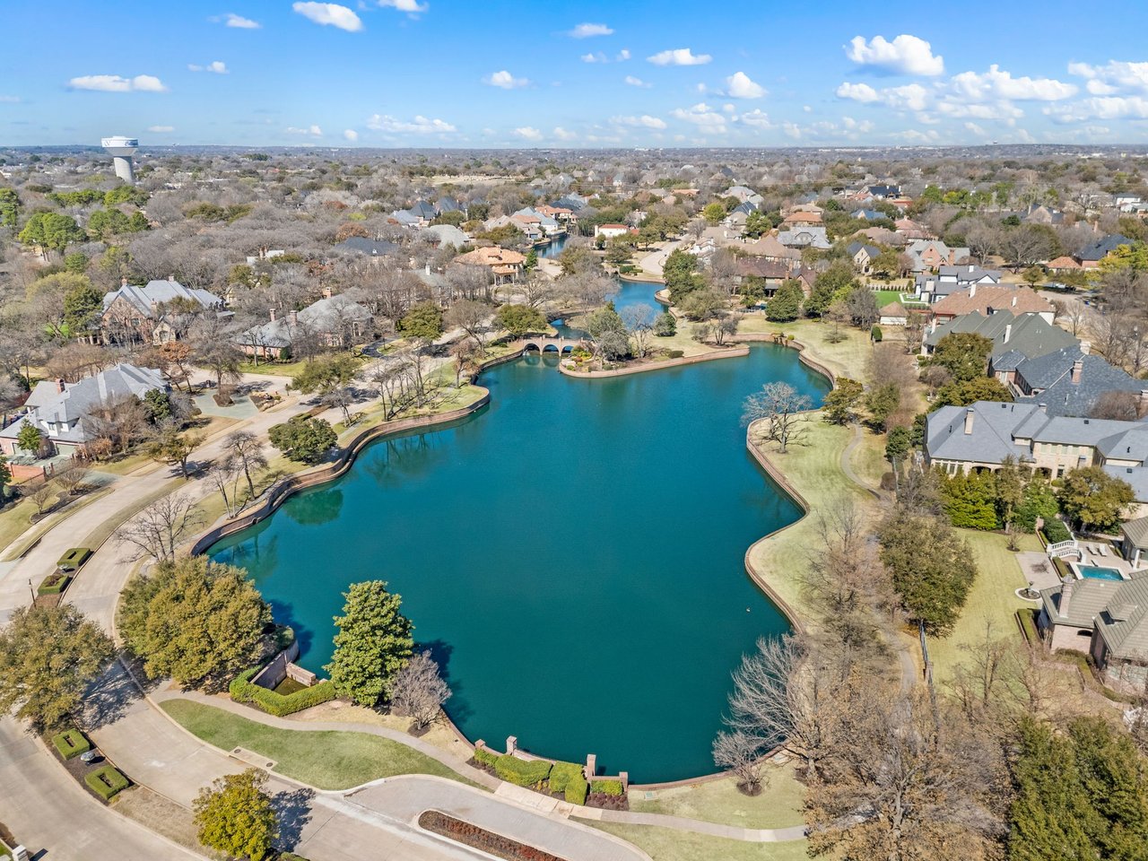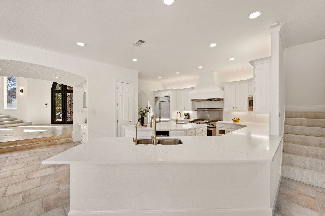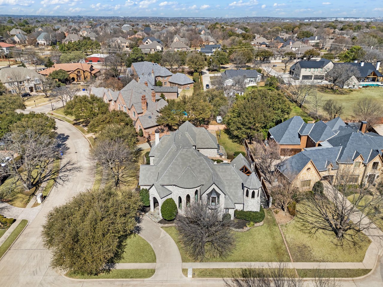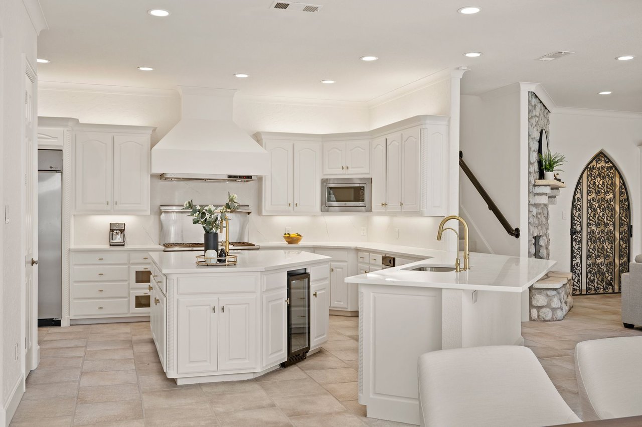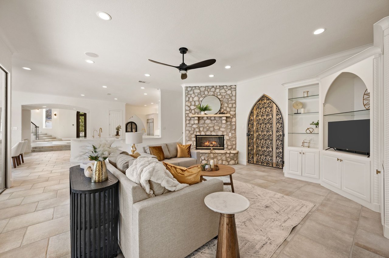 Welcome to this stunning, MOVE-IN READY luxury estate situated on a private half-acre corner lot in the prestigious 24-hour guard-gated community of Montclair Parc. Ideally located just minutes from premier shopping, dining, and a quick commute to DFW Airport. From the moment you enter, the grand wrought-iron staircase, soaring vaulted ceilings, and expansive windows create a breathtaking first impression, filling the home with natural light. Designed for elevated living and effortless entertaining, the first floor offers multiple living and dining spaces, an impressive media room, a walk-in wine room, dual butler’s pantries, and a spacious laundry room complete with built-ins and a pet shower. The chef’s kitchen is a true showpiece, featuring new quartz countertops, a built-in refrigerator, chef-style gas cooktop, and an oversized island perfect for gathering. The private primary suite is thoughtfully located on the main level and showcases a wall of windows overlooking the sparkling pool, a cozy double-sided fireplace, and an expansive custom walk-in closet with built-in shelving and vanity. The spa-inspired primary bath includes a soaking tub, built-in desk, and a luxurious oversized shower with multiple shower heads for a true retreat experience. Upstairs, enjoy a spacious game room with wet bar, a dedicated office with custom built-ins, and a generously sized secondary primary suite, ideal for multigenerational living or extended guests. Step outside to your own private resort. The covered patio overlooks a spectacular pool with a swim-up bar, while a charming bridge leads to a pergola with a fireplace. A built-in grill completes the outdoor living experience, creating the perfect setting for unforgettable gatherings year-round. You don't want to miss your chance for luxury and resort-style living, all in one remarkable property.