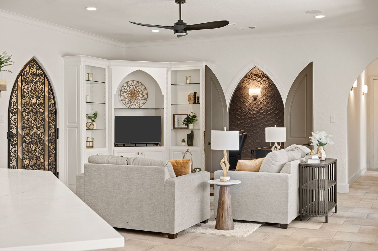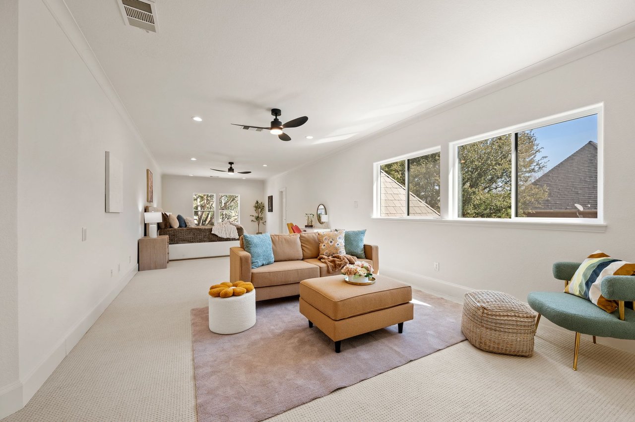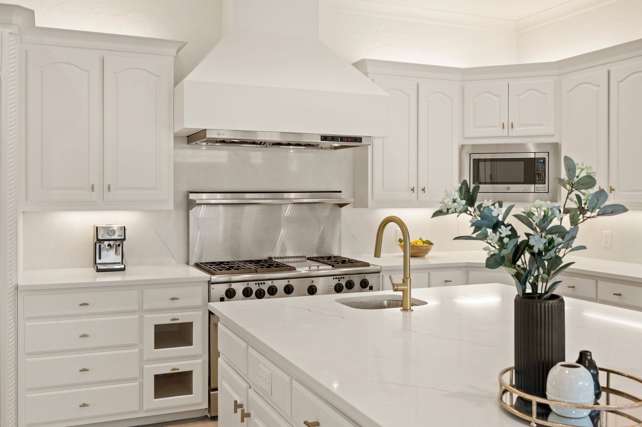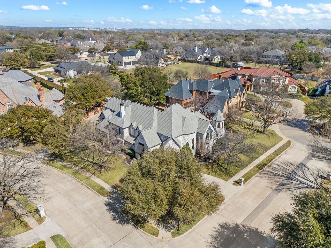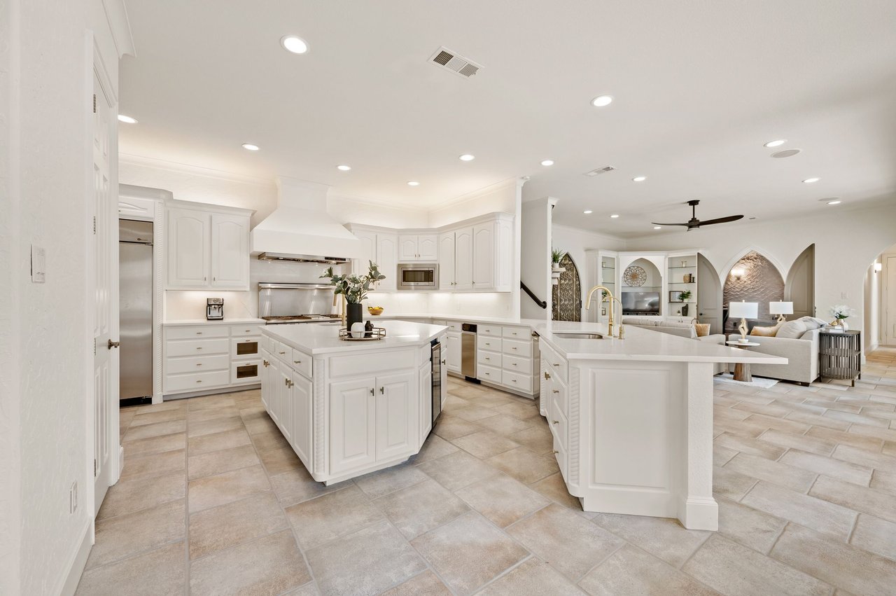Welcome to this stunning, MOVE-IN READY luxury estate situated on a private half-acre corner lot in the prestigious 24-hour guard-gated community of Montclair Parc. Ideally located just minutes from premier shopping, dining, and a quick commute to DFW Airport. From the moment you enter, the grand wrought-iron staircase, soaring vaulted ceilings, and expansive windows create a breathtaking first impression, filling the home with natural light. Designed for elevated living and effortless entertaining, the first floor offers multiple living and dining spaces, an impressive media room, a walk-in wine room, dual butler’s pantries, and a spacious laundry room complete with built-ins and a pet shower. The chef’s kitchen is a true showpiece, featuring new quartz countertops, a built-in refrigerator, chef-style gas cooktop, and an oversized island perfect for gathering. The private primary suite is thoughtfully located on the main level and showcases a wall of windows overlooking the sparkling pool, a cozy double-sided fireplace, and an expansive custom walk-in closet with built-in shelving and vanity. The spa-inspired primary bath includes a soaking tub, built-in desk, and a luxurious oversized shower with multiple shower heads for a true retreat experience. Upstairs, enjoy a spacious game room with wet bar, a dedicated office with custom built-ins, and a generously sized secondary primary suite, ideal for multigenerational living or extended guests. Step outside to your own private resort. The covered patio overlooks a spectacular pool with a swim-up bar, while a charming bridge leads to a pergola with a fireplace. A built-in grill completes the outdoor living experience, creating the perfect setting for unforgettable gatherings year-round. You don't want to miss your chance for luxury and resort-style living, all in one remarkable property.