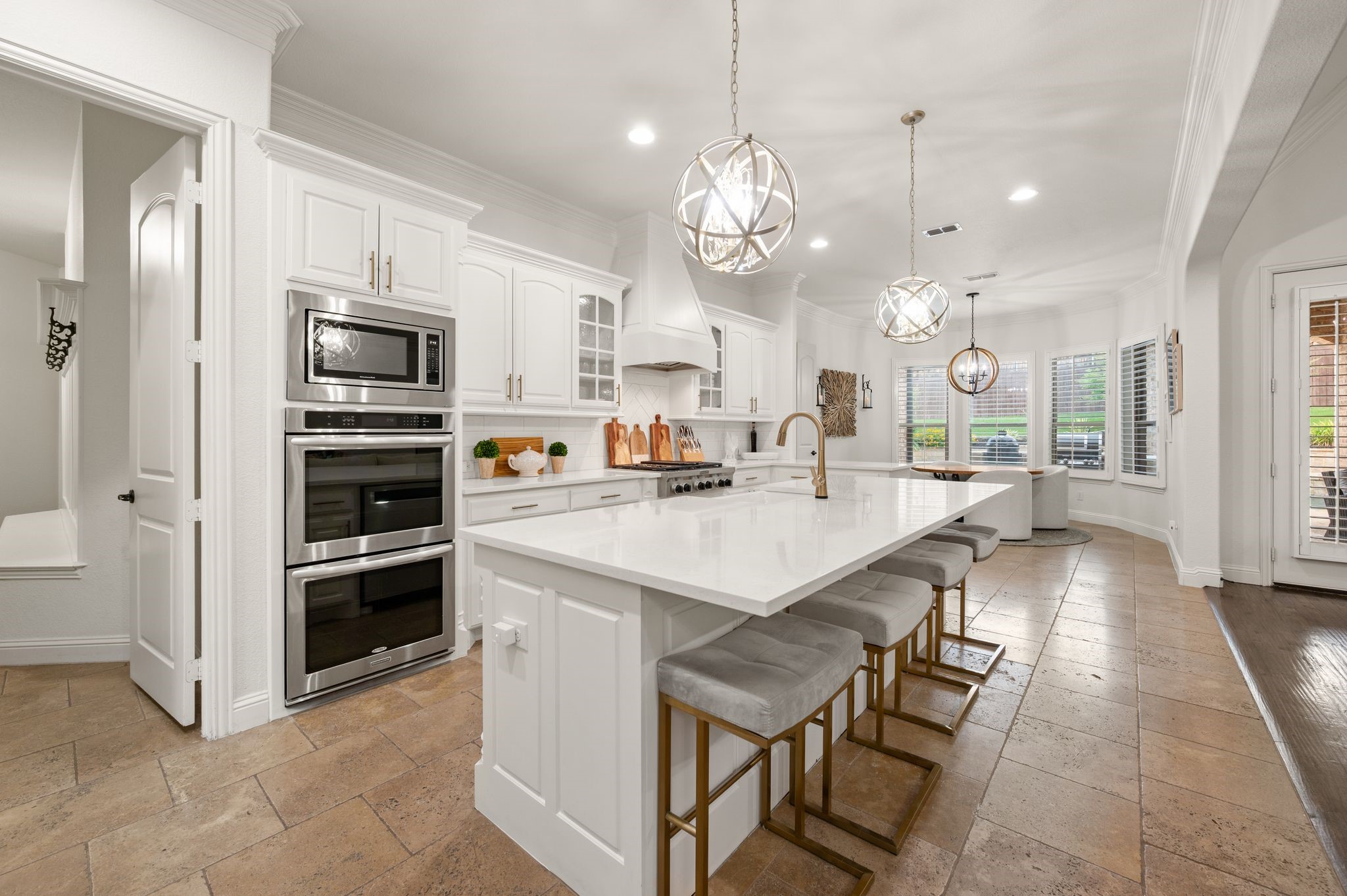 | Flooring | Hardwood, Tile, Travertine |