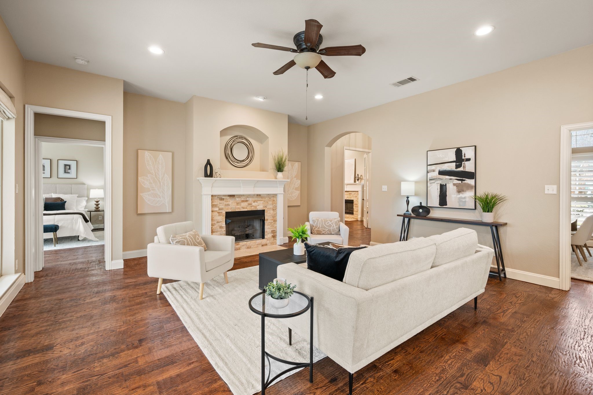 | Fireplace | Gas Log, Living Room, Stone |
