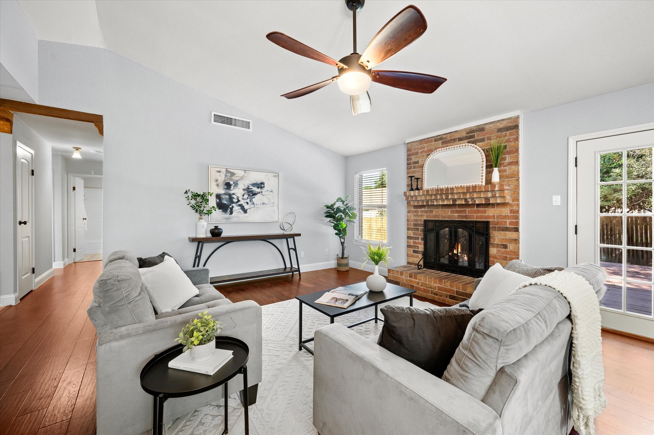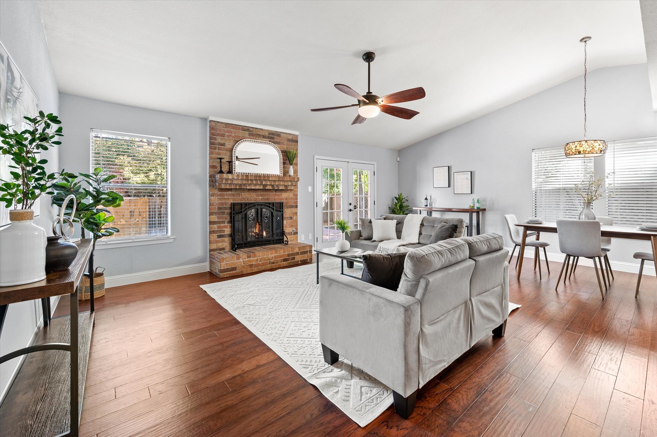 | Fireplace | Gas, Glass Doors, Living Room, Masonry, Raised Hearth |