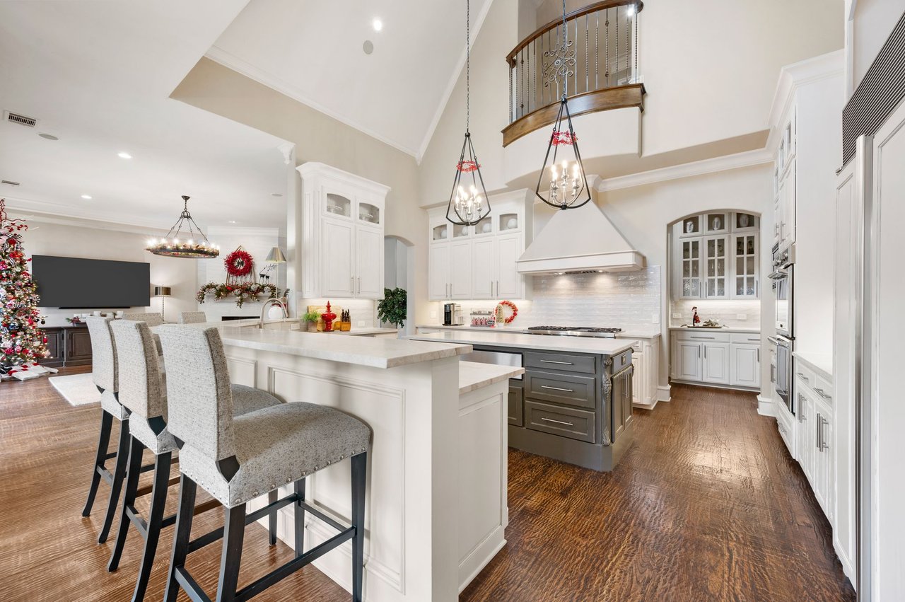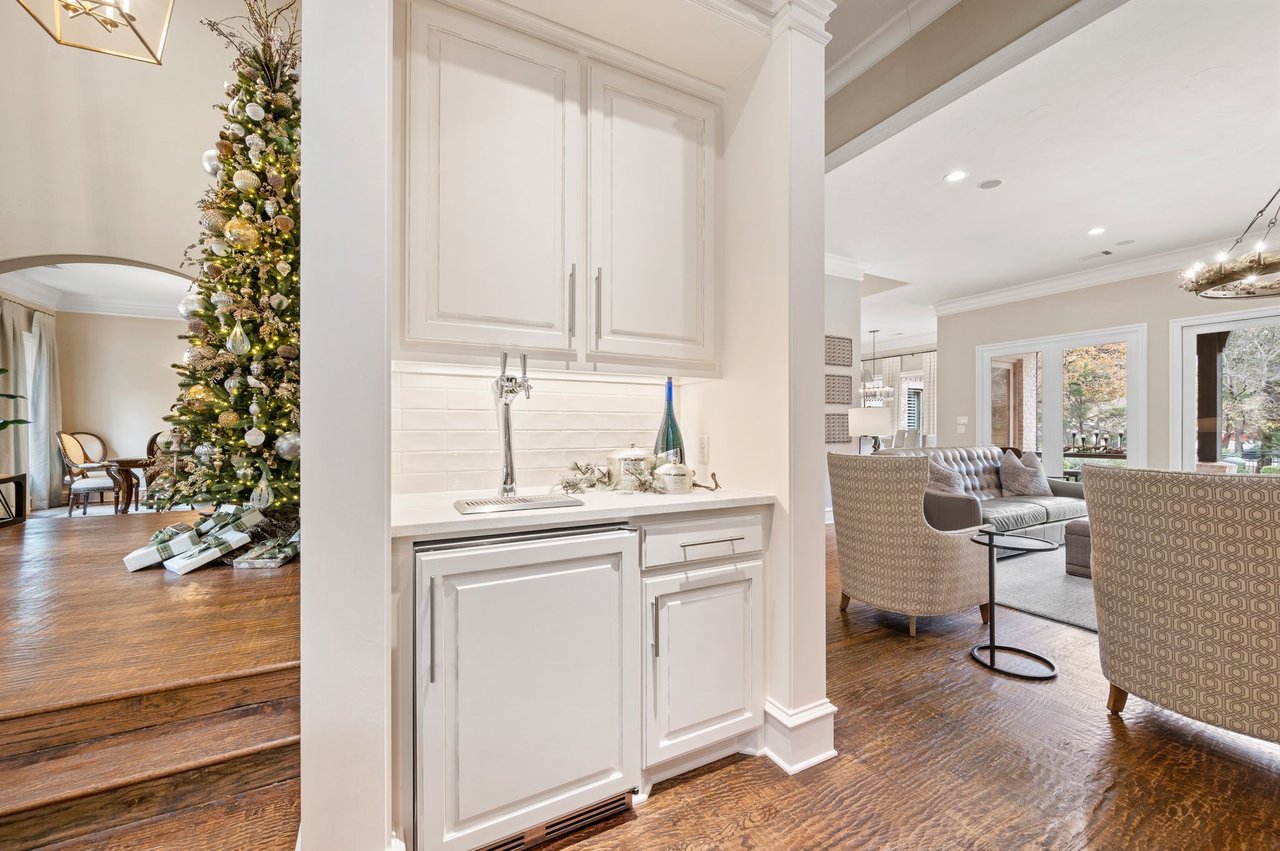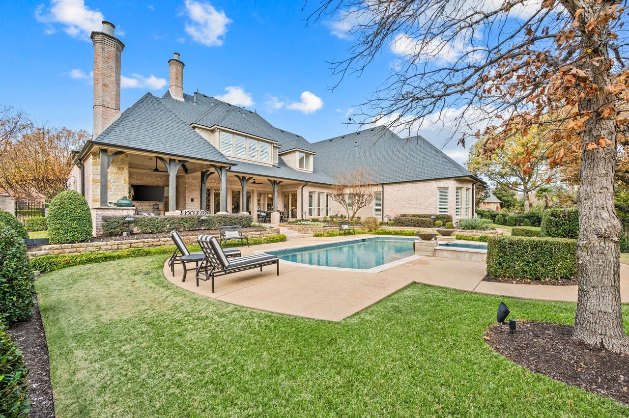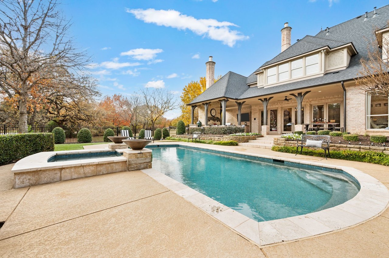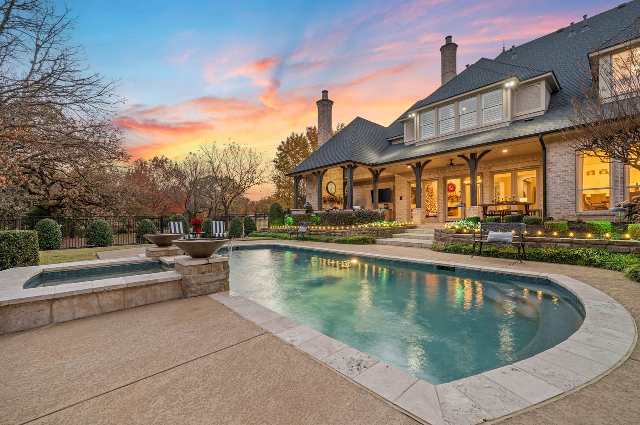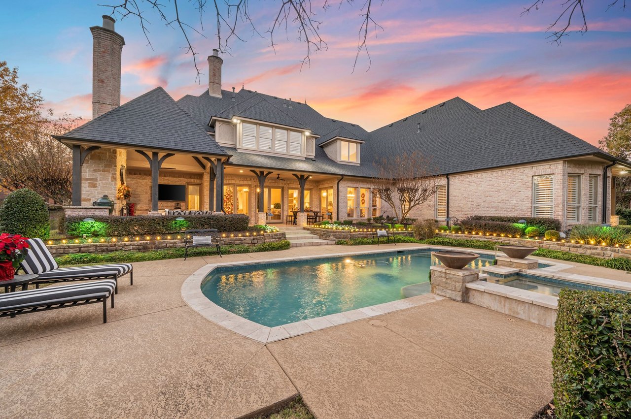 You won’t want to miss this exceptional home in sought-after Westmont, ideally located next to a green space for added privacy. Step inside to soaring ceilings, a stunning spiral staircase & hardwood floors throughout. The home features a well-appointed executive office accented by elegant French doors & a generous closet, cabinet storage & built in shelving. The striking rotunda provides an ideal setting for a conference table & is surrounded by windows that flood the space with natural light. Thoughtfully designed for hosting, the home features Control4 and Sonos control systems & a dedicated lounge with an integrated self-service wine station & kegerator. The inviting living room with a decorative fireplace opens to a dramatic two-story, chef-caliber kitchen complemented by a Juliet balcony overlooking the space. Features include premium Sub Zero & Thermador appliances, Taj Mahal quartzite countertops, a gas cooktop, extensive built-in cabinets & counter space. Beyond the kitchen is the mud room featuring a built-in desk and a dedicated custom cabinet for gift wrapping & craft organization. The primary suite is conveniently located on the main level & features a Hollywood tub, a huge walk-in closet with built-in storage & a custom shoe wall with 124 shoe bin capacity. A guest suite is also conveniently located downstairs with access to the covered patio. Upstairs, you’ll find three bedrooms, each with its own ensuite bathrooms highlighted by walk-in closets. A spacious game room features a wet bar that flows to the media room. Two of the upstairs bedrooms are connected by a versatile flex space with built-in desks & cabinetry, perfect for studying or additional office spaces. Step outside to your private backyard oasis, highlighted by a sparkling pool with a spa & water feature. While the well-appointed outdoor kitchen & living area provides endless entertainment featuring an outdoor fireplace & ample space for seating & dining.