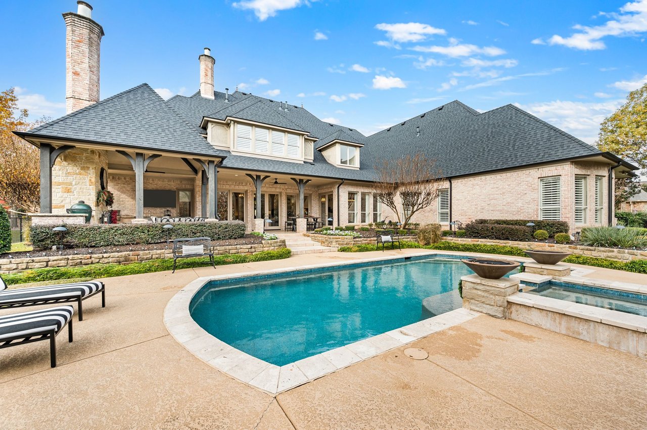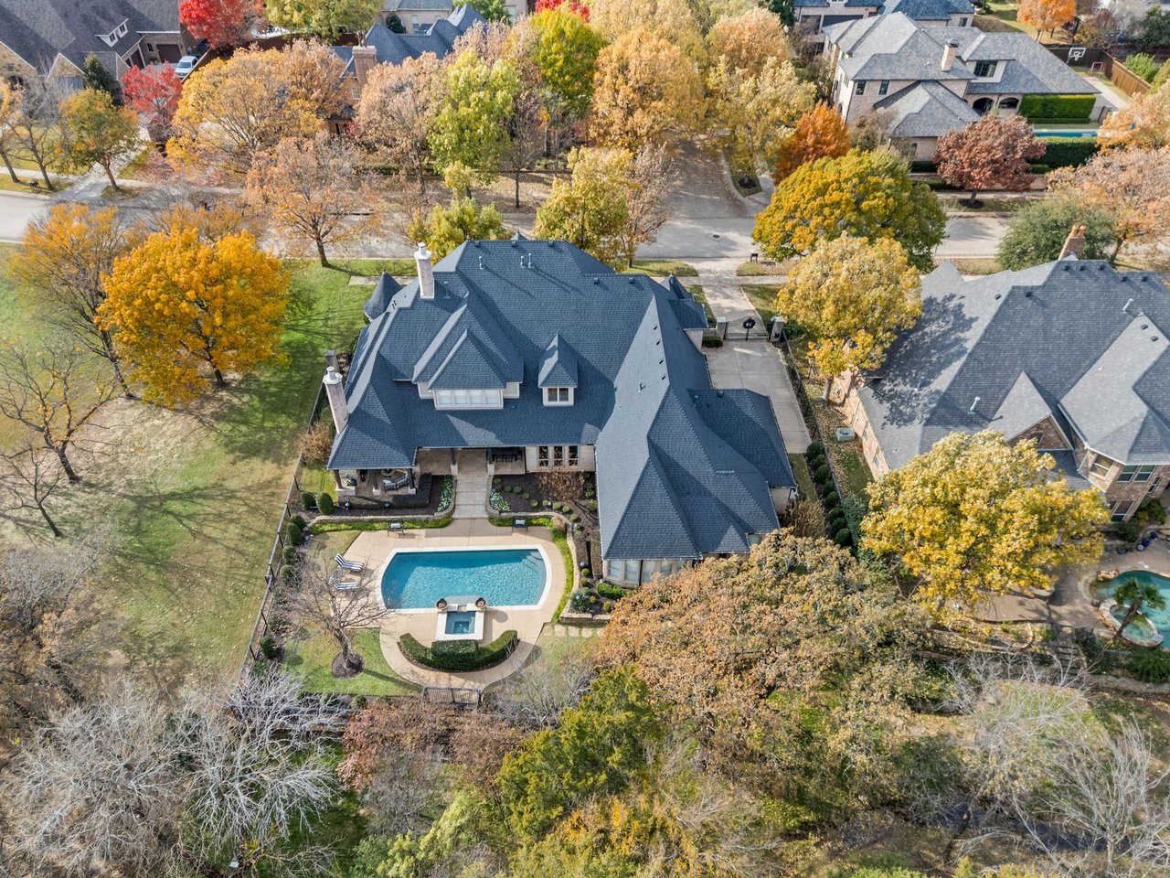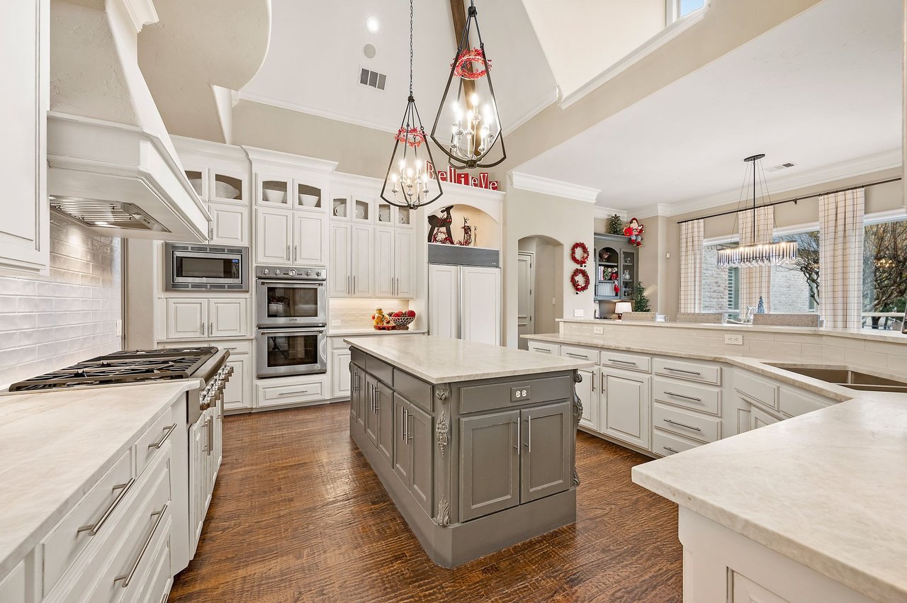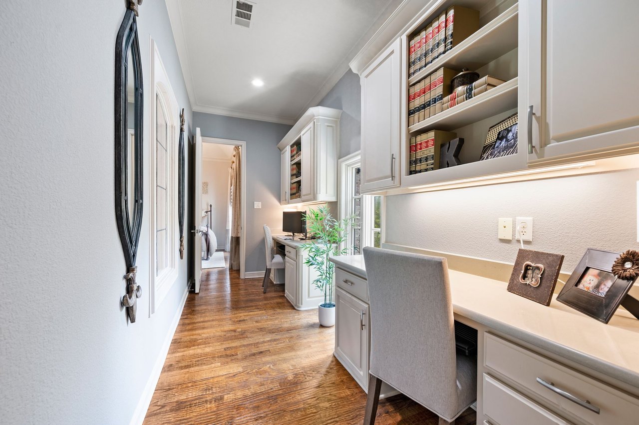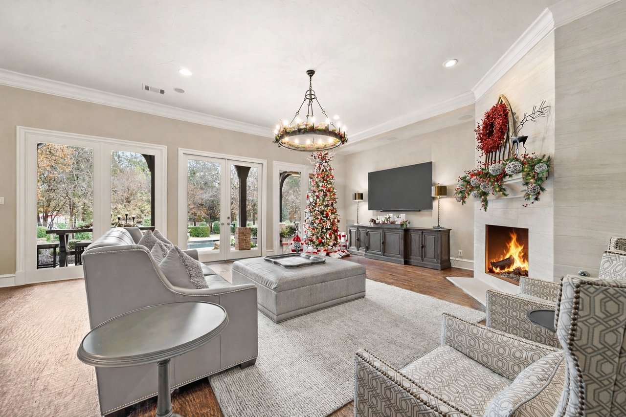 You won’t want to miss this exceptional home in sought-after Westmont, ideally located next to a green space for added privacy. Step inside to soaring ceilings, a stunning spiral staircase & hardwood floors throughout. The home features a well-appointed executive office accented by elegant French doors & a generous closet, cabinet storage & built in shelving. The striking rotunda provides an ideal setting for a conference table & is surrounded by windows that flood the space with natural light. Thoughtfully designed for hosting, the home features Control4 and Sonos control systems & a dedicated lounge with an integrated self-service wine station & kegerator. The inviting living room with a decorative fireplace opens to a dramatic two-story, chef-caliber kitchen complemented by a Juliet balcony overlooking the space. Features include premium Sub Zero & Thermador appliances, Taj Mahal quartzite countertops, a gas cooktop, extensive built-in cabinets & counter space. Beyond the kitchen is the mud room featuring a built-in desk and a dedicated custom cabinet for gift wrapping & craft organization. The primary suite is conveniently located on the main level & features a Hollywood tub, a huge walk-in closet with built-in storage & a custom shoe wall with 124 shoe bin capacity. A guest suite is also conveniently located downstairs with access to the covered patio. Upstairs, you’ll find three bedrooms, each with its own ensuite bathrooms highlighted by walk-in closets. A spacious game room features a wet bar that flows to the media room. Two of the upstairs bedrooms are connected by a versatile flex space with built-in desks & cabinetry, perfect for studying or additional office spaces. Step outside to your private backyard oasis, highlighted by a sparkling pool with a spa & water feature. While the well-appointed outdoor kitchen & living area provides endless entertainment featuring an outdoor fireplace & ample space for seating & dining.