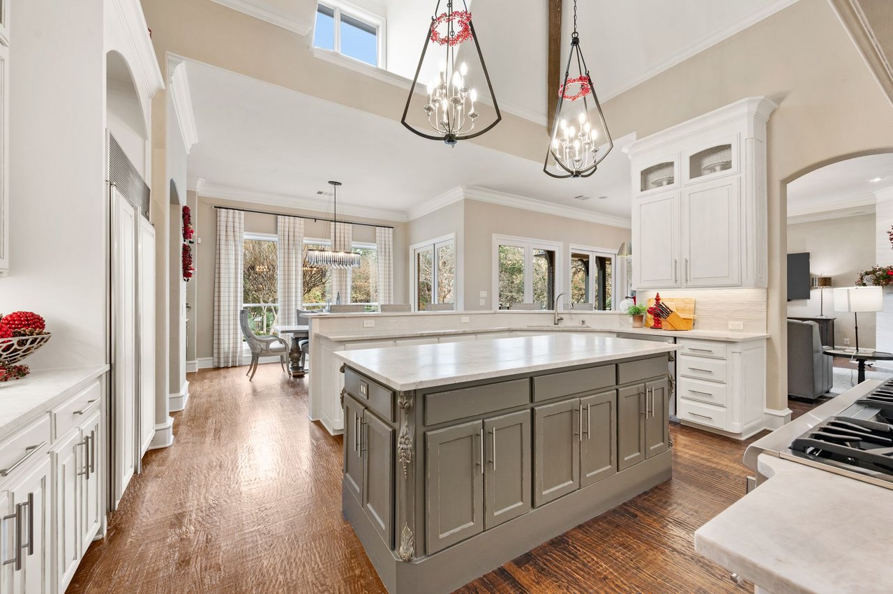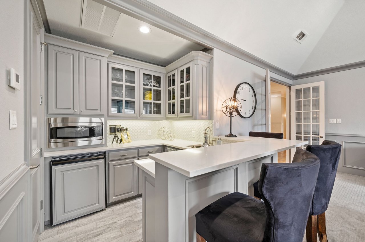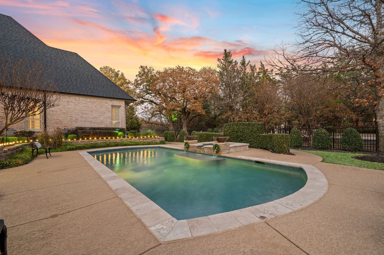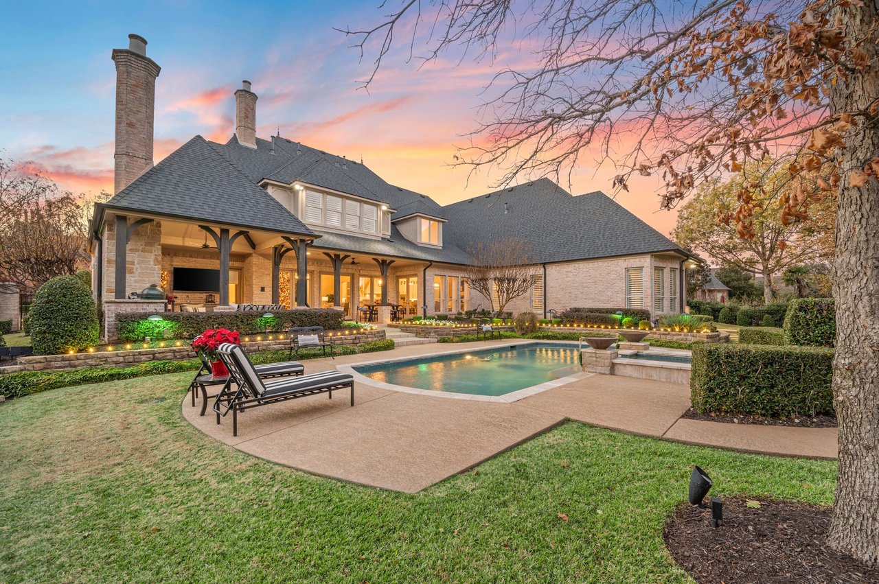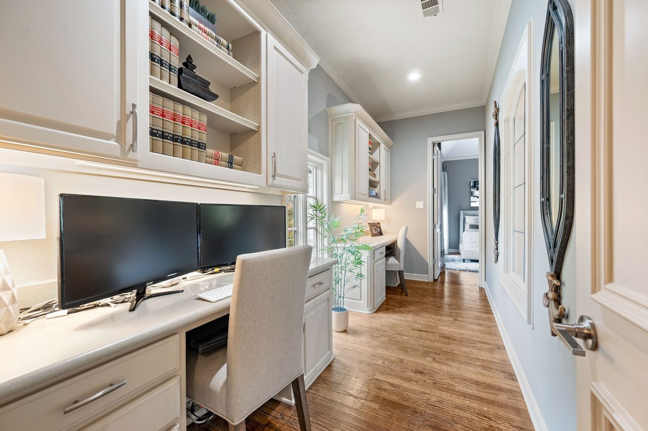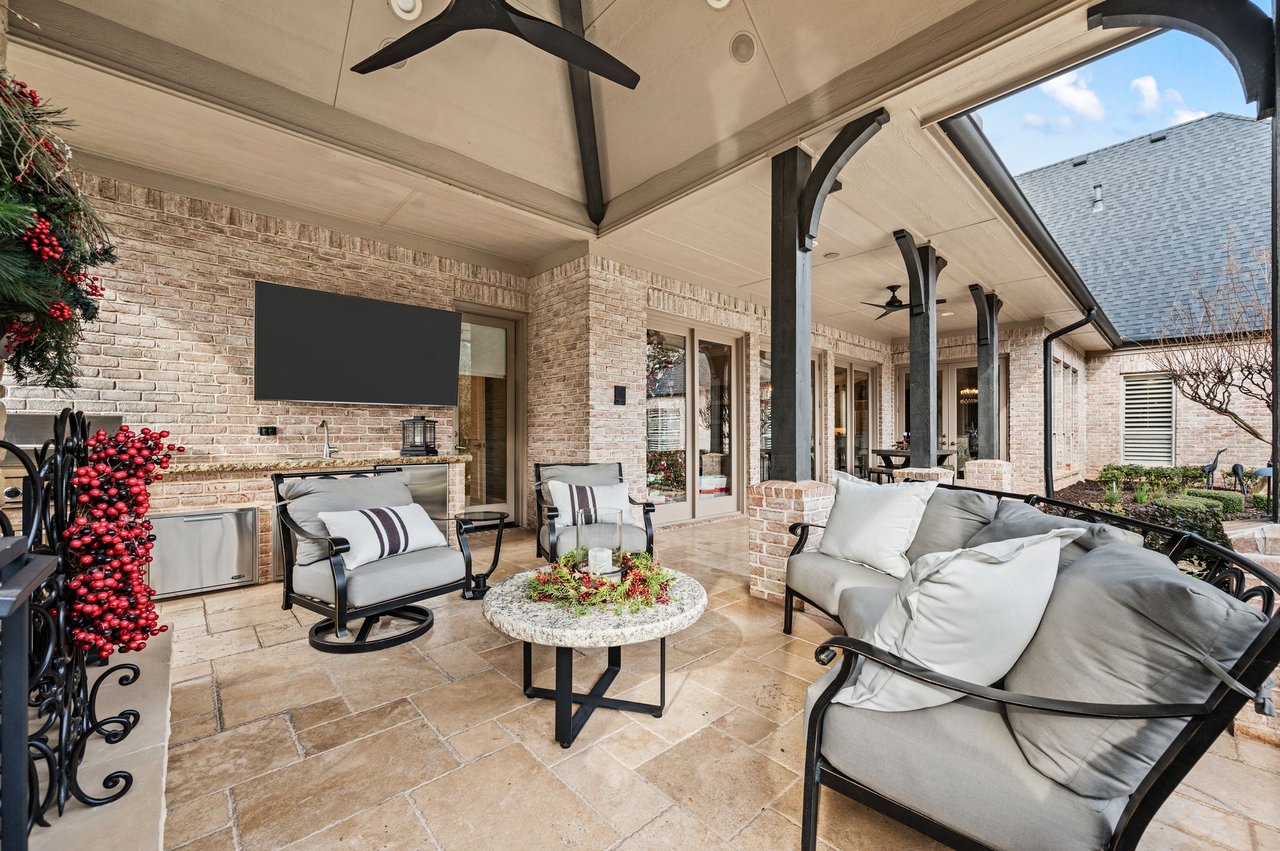 You won’t want to miss this exceptional home in sought-after Westmont, ideally located next to a green space for added privacy. Step inside to soaring ceilings, a stunning spiral staircase & hardwood floors throughout. The home features a well-appointed executive office accented by elegant French doors & a generous closet, cabinet storage & built in shelving. The striking rotunda provides an ideal setting for a conference table & is surrounded by windows that flood the space with natural light. Thoughtfully designed for hosting, the home features Control4 and Sonos control systems & a dedicated lounge with an integrated self-service wine station & kegerator. The inviting living room with a decorative fireplace opens to a dramatic two-story, chef-caliber kitchen complemented by a Juliet balcony overlooking the space. Features include premium Sub Zero & Thermador appliances, Taj Mahal quartzite countertops, a gas cooktop, extensive built-in cabinets & counter space. Beyond the kitchen is the mud room featuring a built-in desk and a dedicated custom cabinet for gift wrapping & craft organization. The primary suite is conveniently located on the main level & features a Hollywood tub, a huge walk-in closet with built-in storage & a custom shoe wall with 124 shoe bin capacity. A guest suite is also conveniently located downstairs with access to the covered patio. Upstairs, you’ll find three bedrooms, each with its own ensuite bathrooms highlighted by walk-in closets. A spacious game room features a wet bar that flows to the media room. Two of the upstairs bedrooms are connected by a versatile flex space with built-in desks & cabinetry, perfect for studying or additional office spaces. Step outside to your private backyard oasis, highlighted by a sparkling pool with a spa & water feature. While the well-appointed outdoor kitchen & living area provides endless entertainment featuring an outdoor fireplace & ample space for seating & dining.