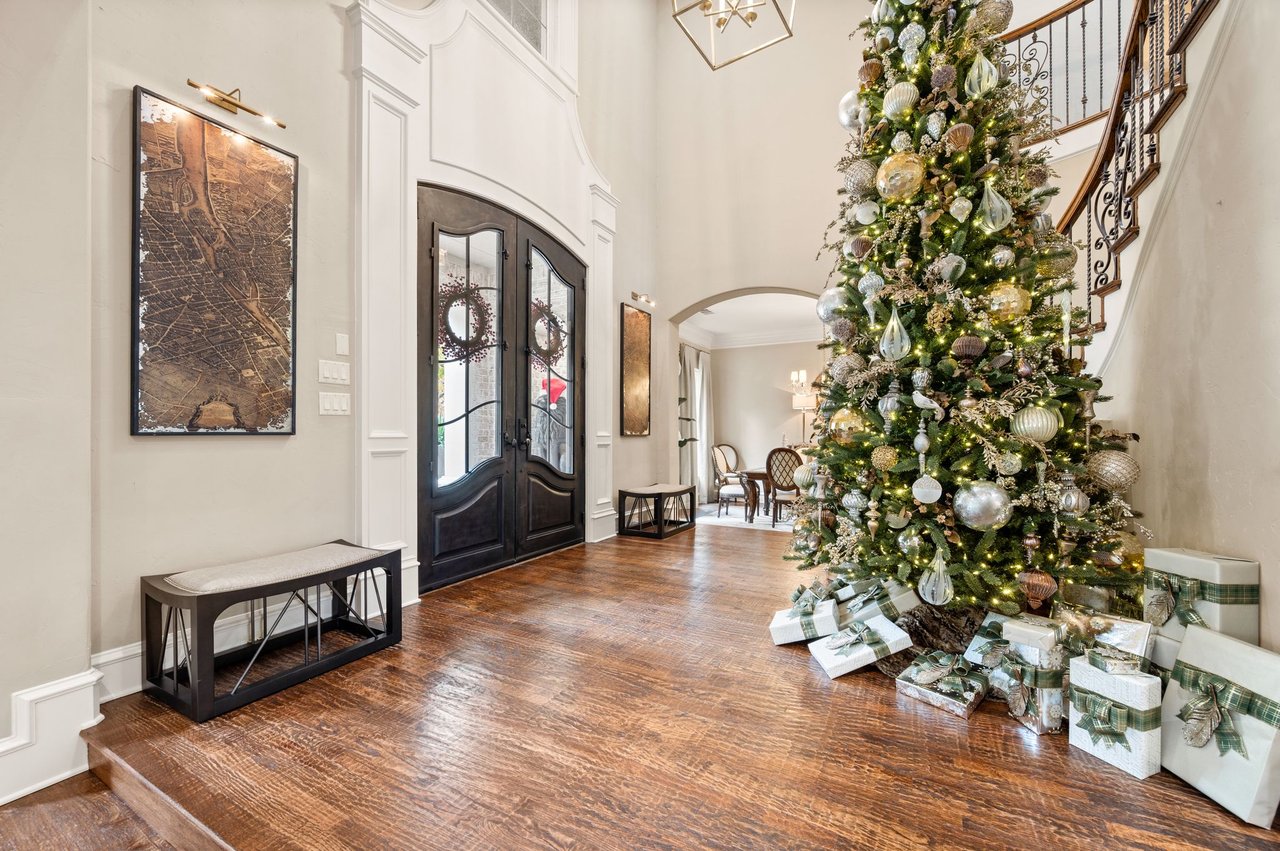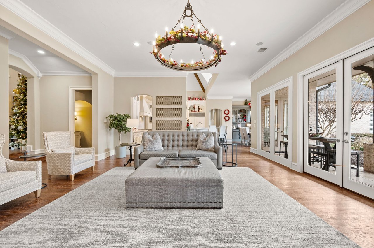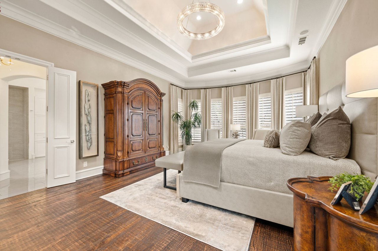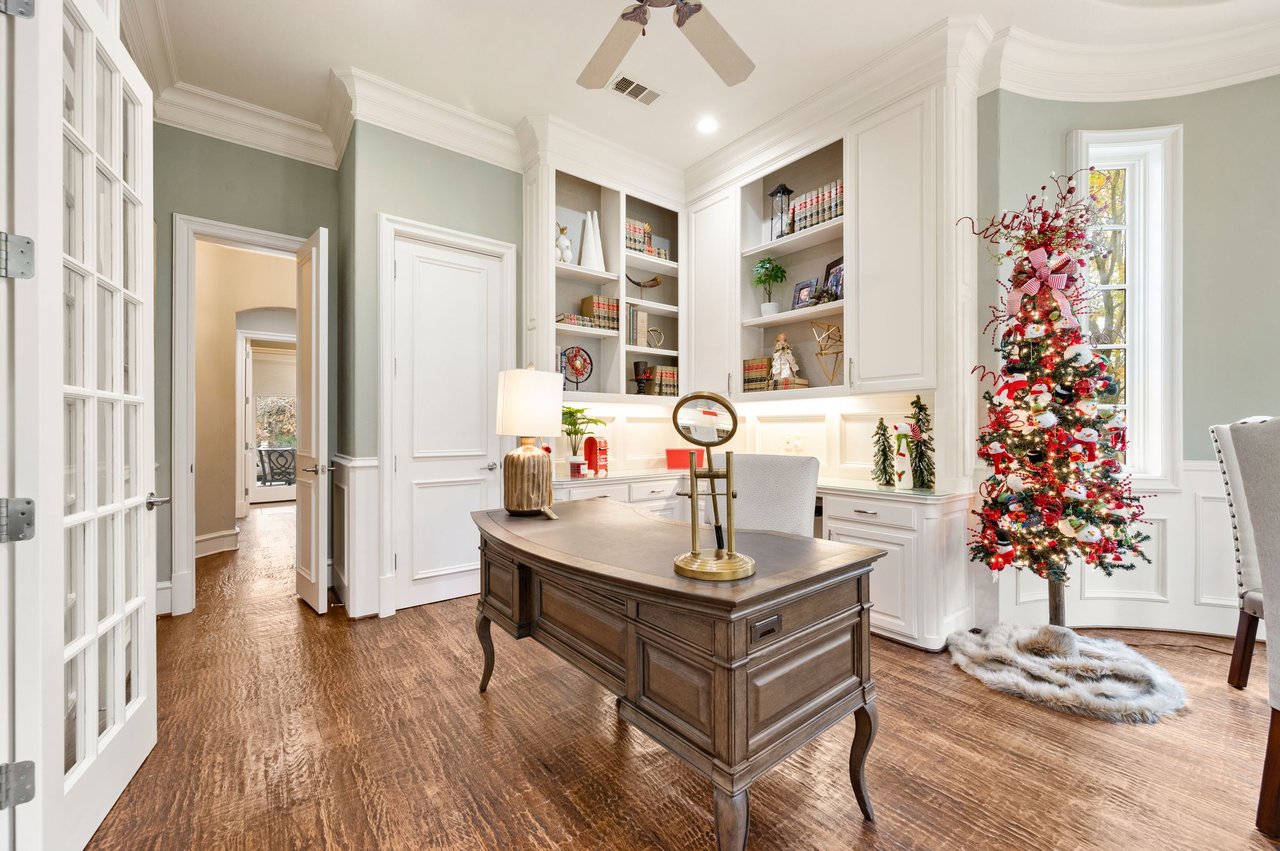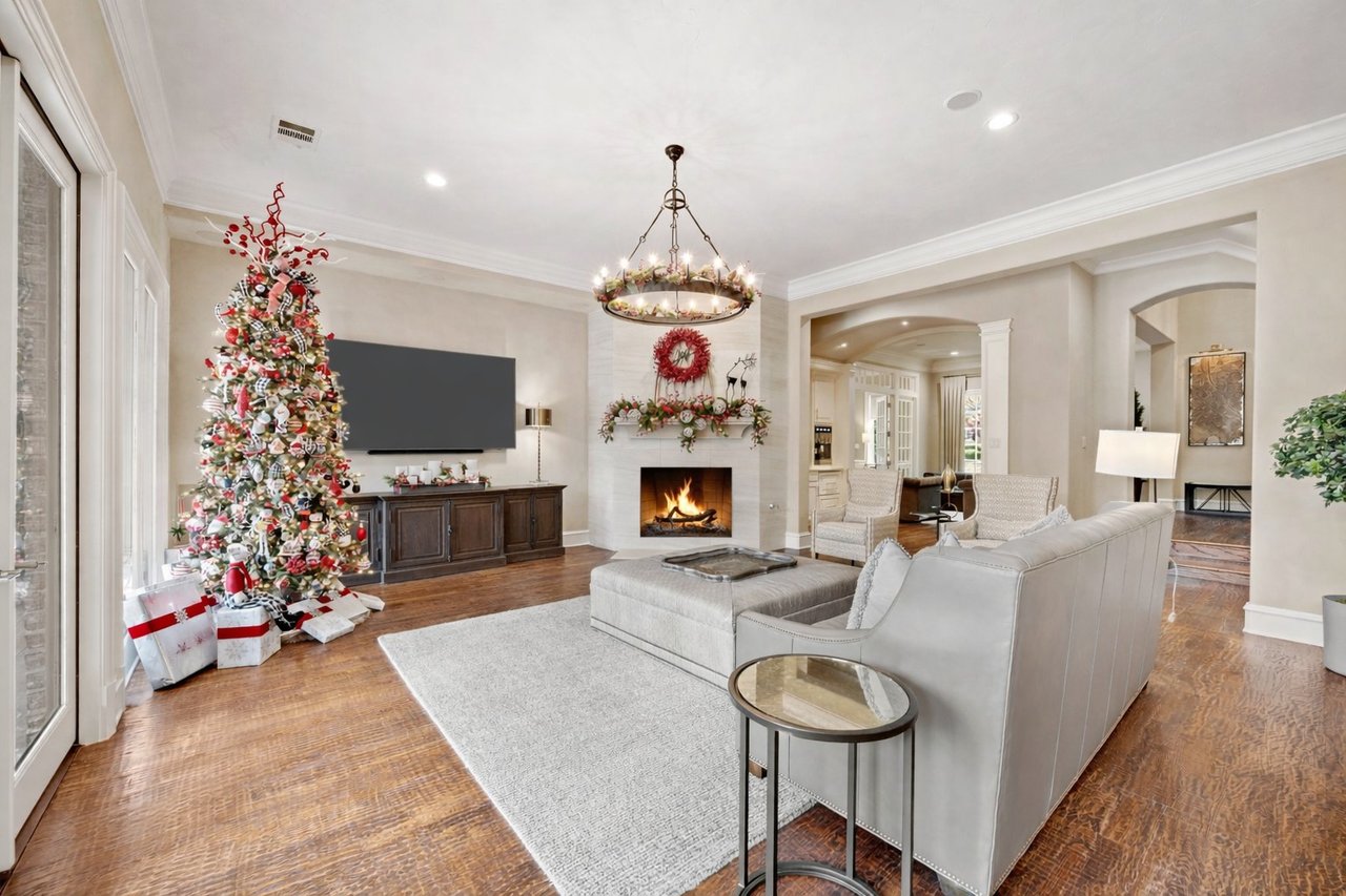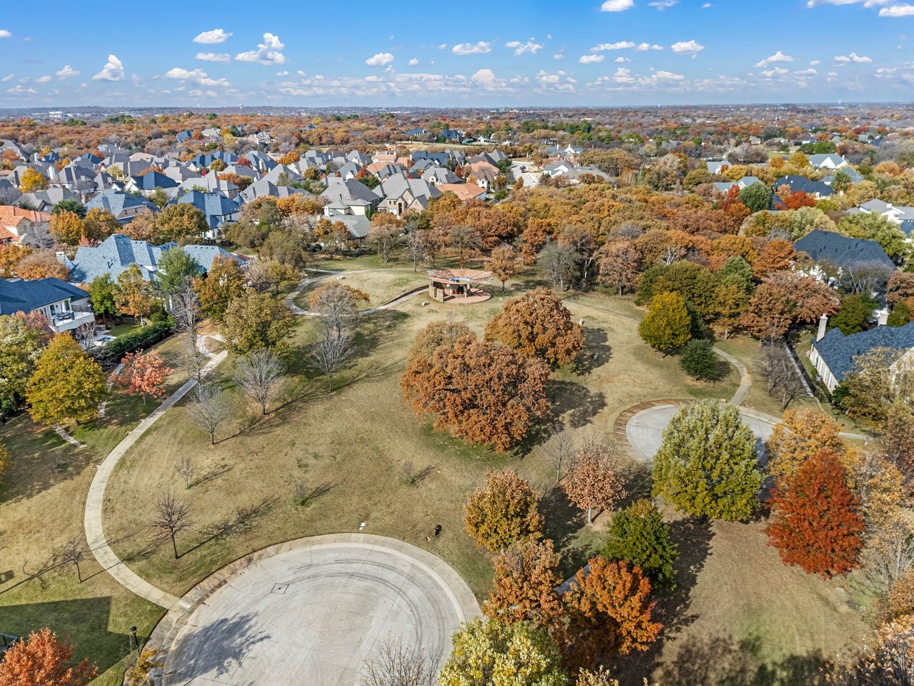 You won’t want to miss this exceptional home in sought-after Westmont, ideally located next to a green space for added privacy. Step inside to soaring ceilings, a stunning spiral staircase & hardwood floors throughout. The home features a well-appointed executive office accented by elegant French doors & a generous closet, cabinet storage & built in shelving. The striking rotunda provides an ideal setting for a conference table & is surrounded by windows that flood the space with natural light. Thoughtfully designed for hosting, the home features Control4 and Sonos control systems & a dedicated lounge with an integrated self-service wine station & kegerator. The inviting living room with a decorative fireplace opens to a dramatic two-story, chef-caliber kitchen complemented by a Juliet balcony overlooking the space. Features include premium Sub Zero & Thermador appliances, Taj Mahal quartzite countertops, a gas cooktop, extensive built-in cabinets & counter space. Beyond the kitchen is the mud room featuring a built-in desk and a dedicated custom cabinet for gift wrapping & craft organization. The primary suite is conveniently located on the main level & features a Hollywood tub, a huge walk-in closet with built-in storage & a custom shoe wall with 124 shoe bin capacity. A guest suite is also conveniently located downstairs with access to the covered patio. Upstairs, you’ll find three bedrooms, each with its own ensuite bathrooms highlighted by walk-in closets. A spacious game room features a wet bar that flows to the media room. Two of the upstairs bedrooms are connected by a versatile flex space with built-in desks & cabinetry, perfect for studying or additional office spaces. Step outside to your private backyard oasis, highlighted by a sparkling pool with a spa & water feature. While the well-appointed outdoor kitchen & living area provides endless entertainment featuring an outdoor fireplace & ample space for seating & dining.