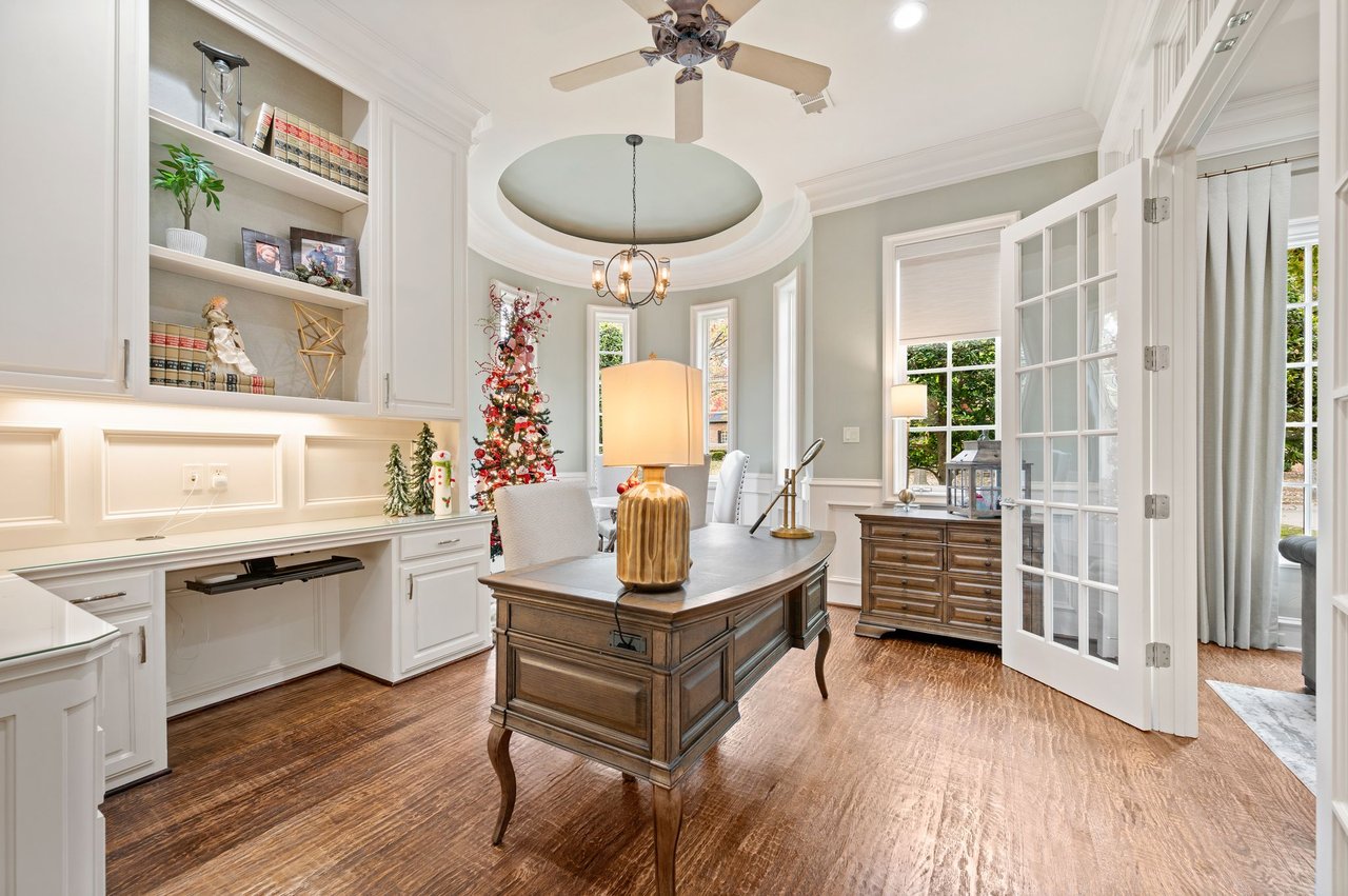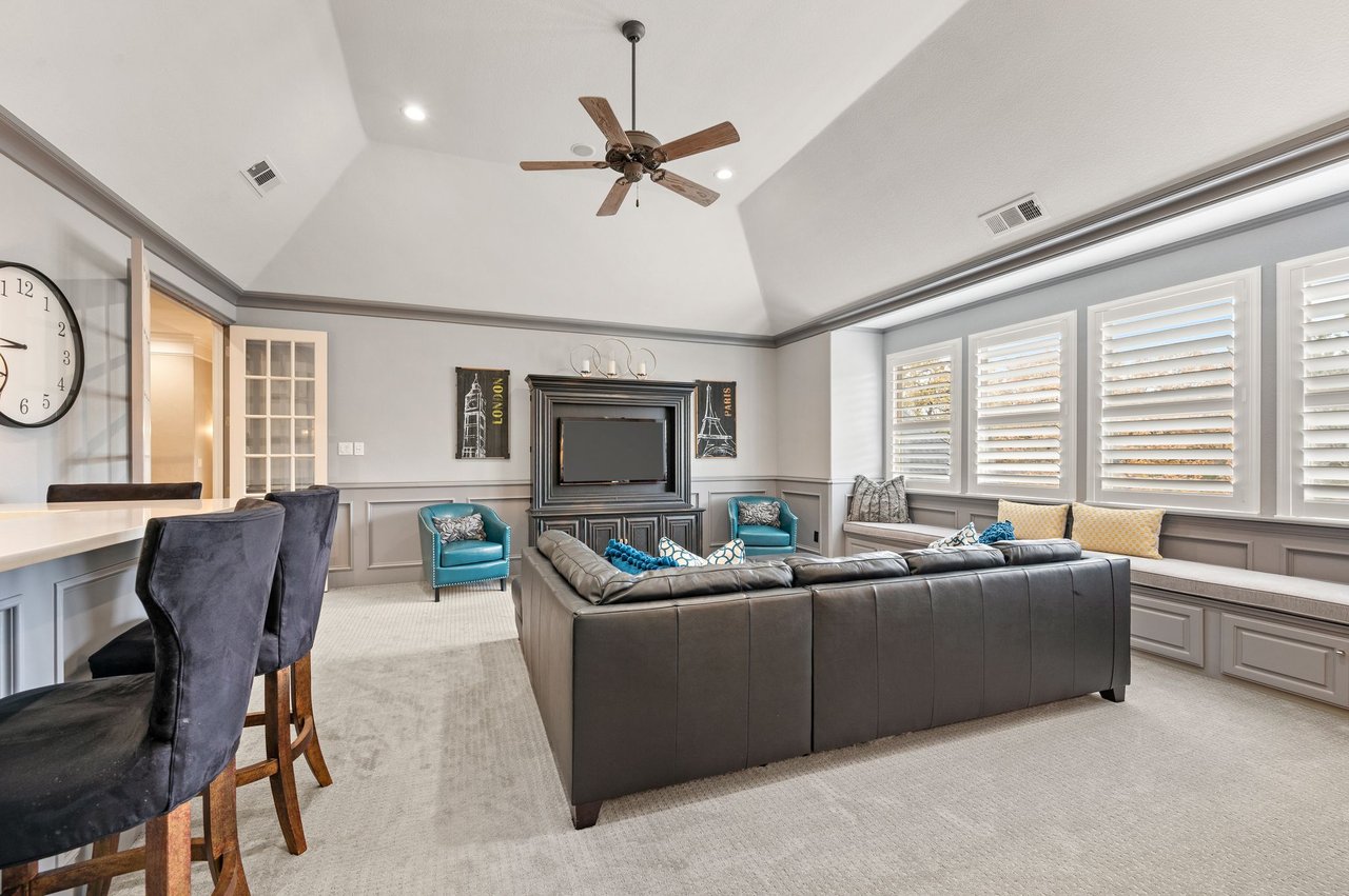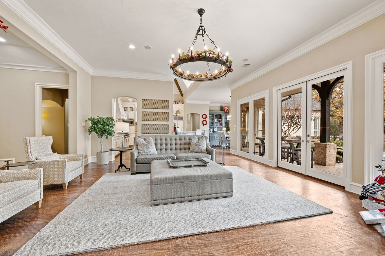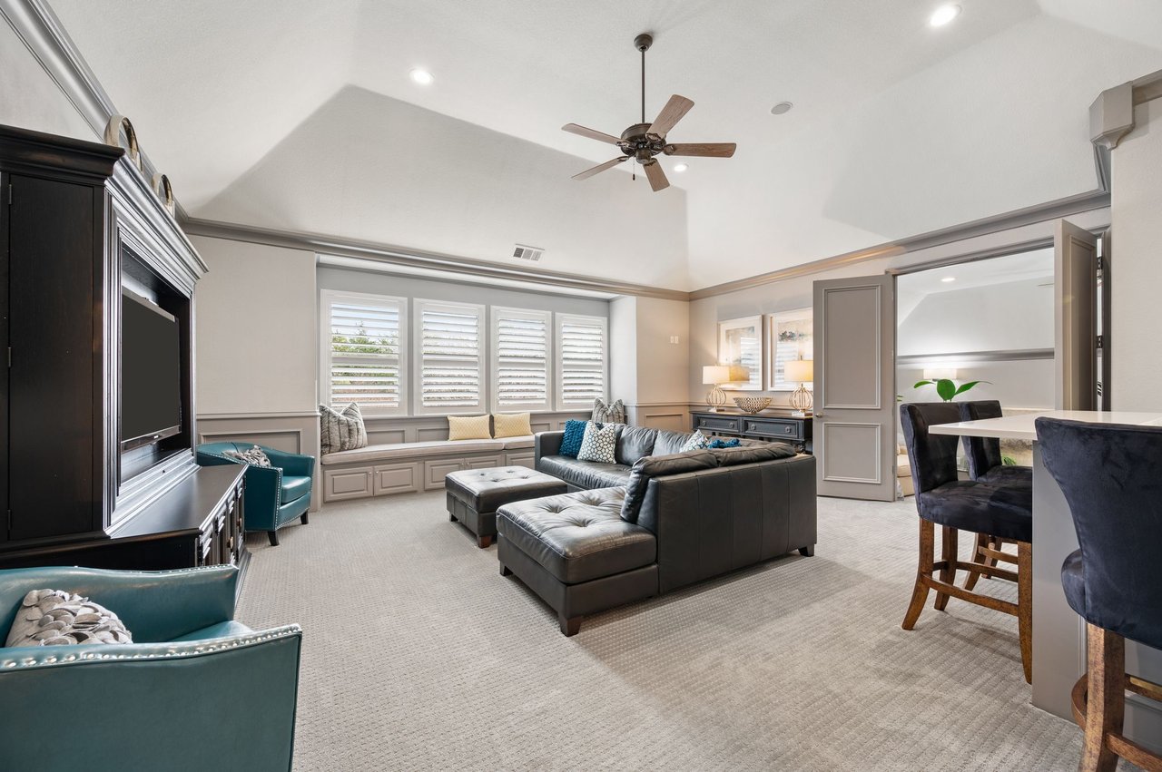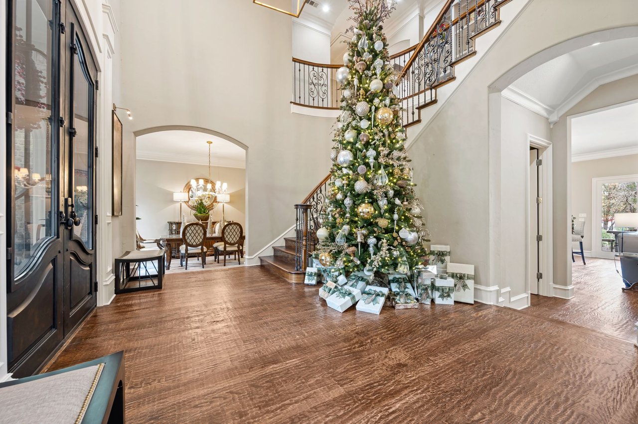 You won’t want to miss this exceptional home in sought-after Westmont, ideally located next to a green space for added privacy. Step inside to soaring ceilings, a stunning spiral staircase & hardwood floors throughout. The home features a well-appointed executive office accented by elegant French doors & a generous closet, cabinet storage & built in shelving. The striking rotunda provides an ideal setting for a conference table & is surrounded by windows that flood the space with natural light. Thoughtfully designed for hosting, the home features Control4 and Sonos control systems & a dedicated lounge with an integrated self-service wine station & kegerator. The inviting living room with a decorative fireplace opens to a dramatic two-story, chef-caliber kitchen complemented by a Juliet balcony overlooking the space. Features include premium Sub Zero & Thermador appliances, Taj Mahal quartzite countertops, a gas cooktop, extensive built-in cabinets & counter space. Beyond the kitchen is the mud room featuring a built-in desk and a dedicated custom cabinet for gift wrapping & craft organization. The primary suite is conveniently located on the main level & features a Hollywood tub, a huge walk-in closet with built-in storage & a custom shoe wall with 124 shoe bin capacity. A guest suite is also conveniently located downstairs with access to the covered patio. Upstairs, you’ll find three bedrooms, each with its own ensuite bathrooms highlighted by walk-in closets. A spacious game room features a wet bar that flows to the media room. Two of the upstairs bedrooms are connected by a versatile flex space with built-in desks & cabinetry, perfect for studying or additional office spaces. Step outside to your private backyard oasis, highlighted by a sparkling pool with a spa & water feature. While the well-appointed outdoor kitchen & living area provides endless entertainment featuring an outdoor fireplace & ample space for seating & dining.