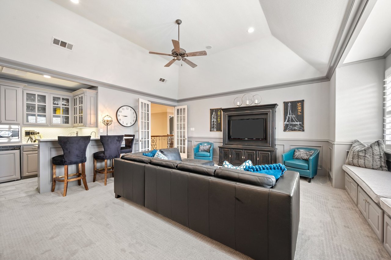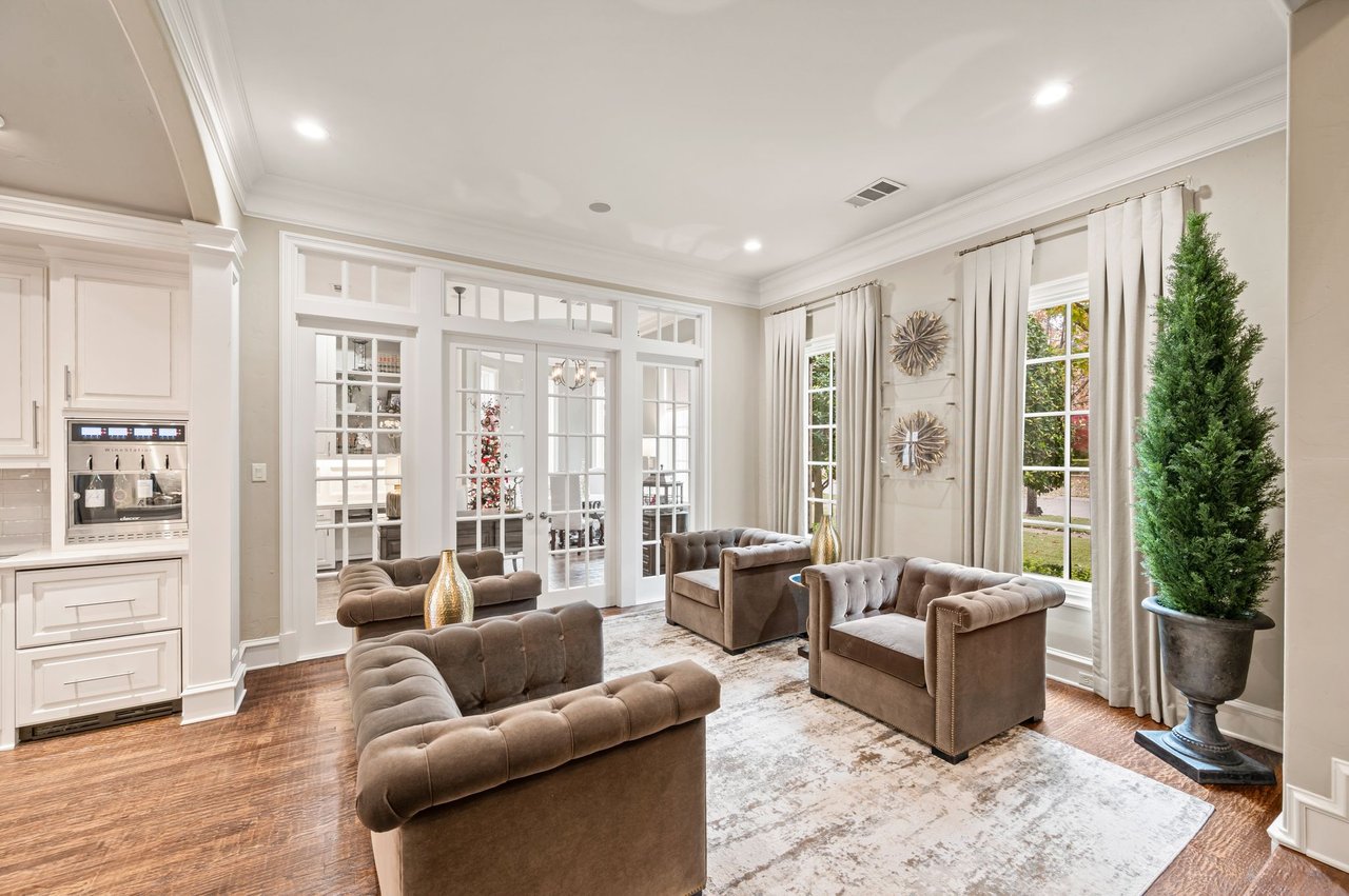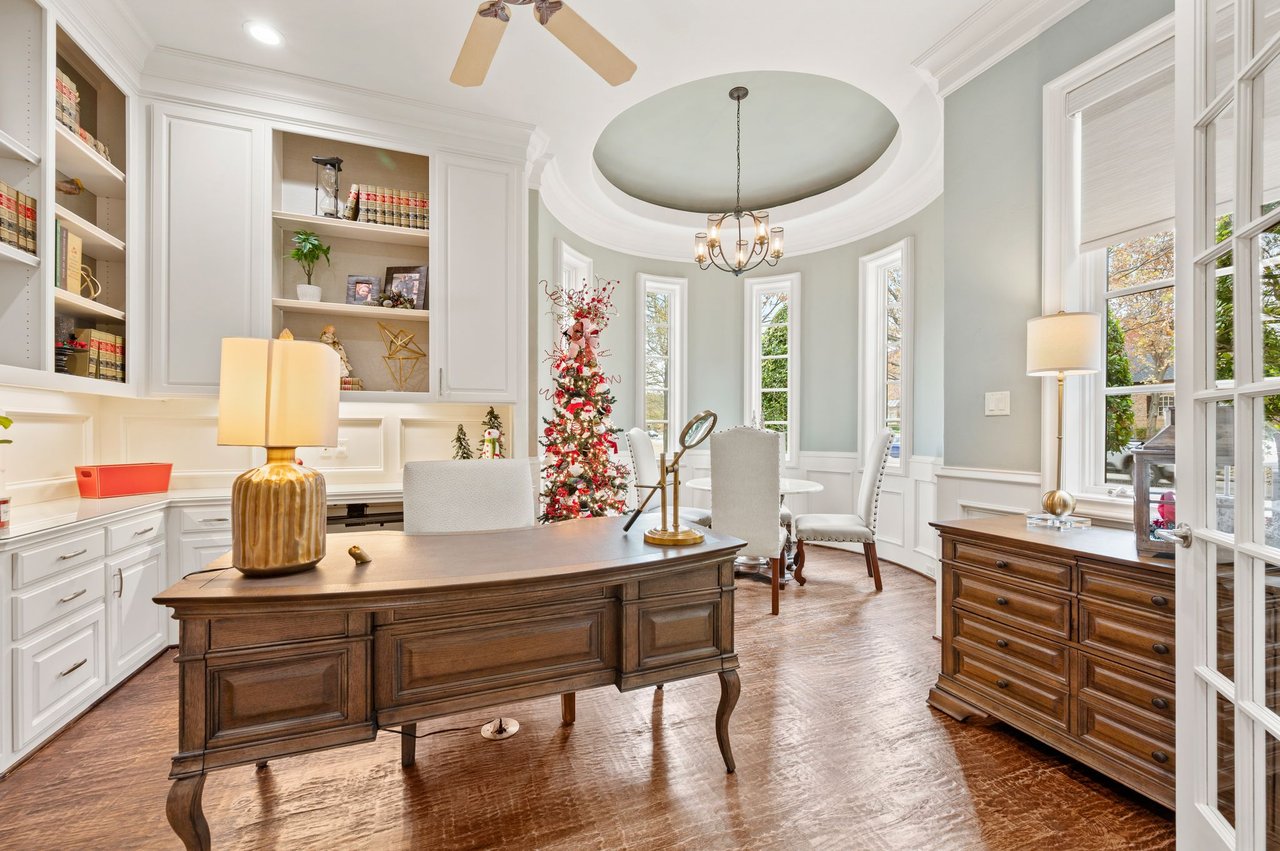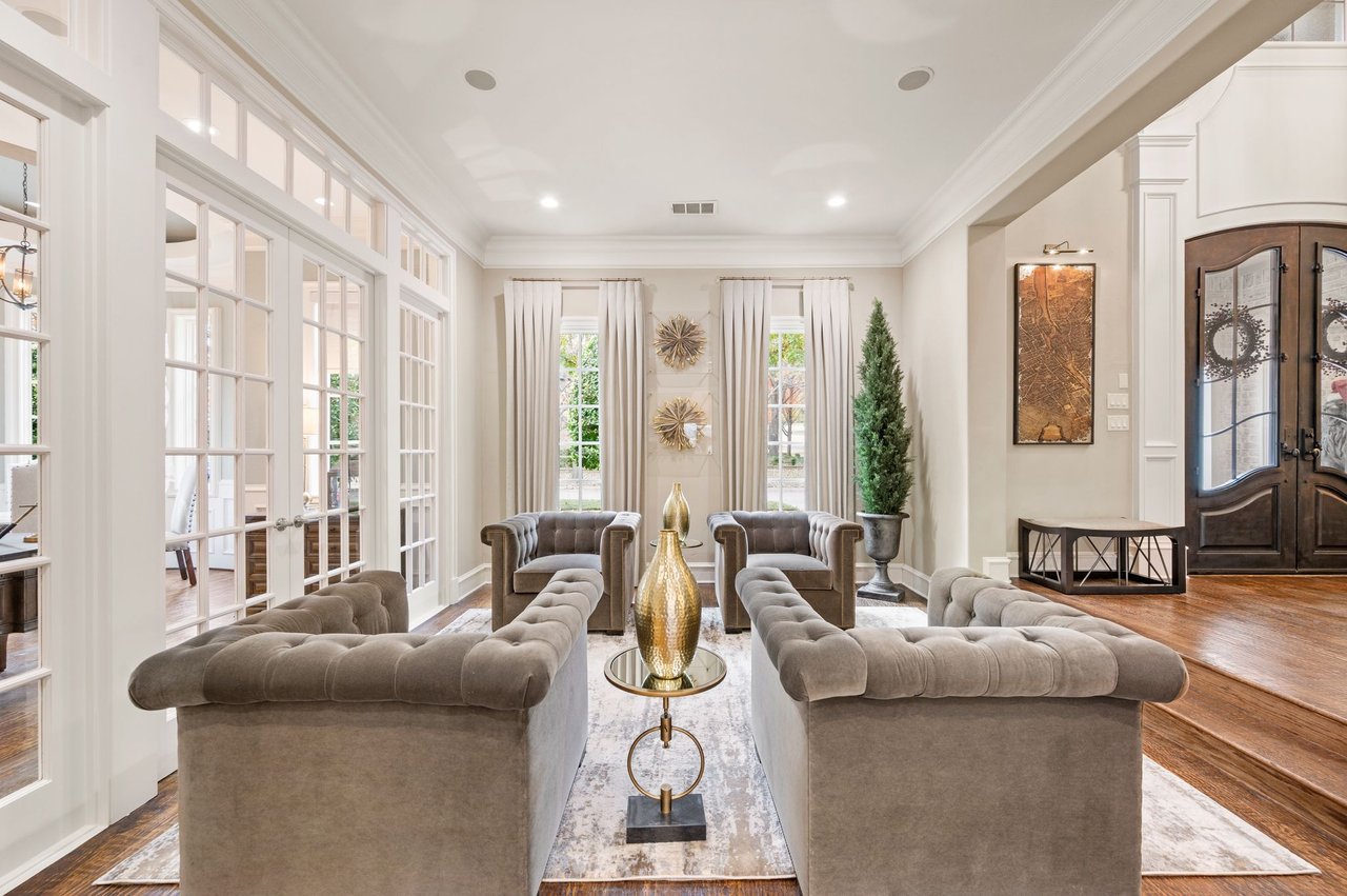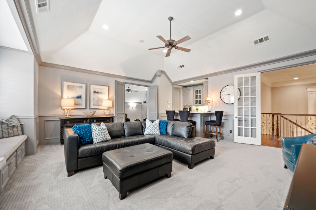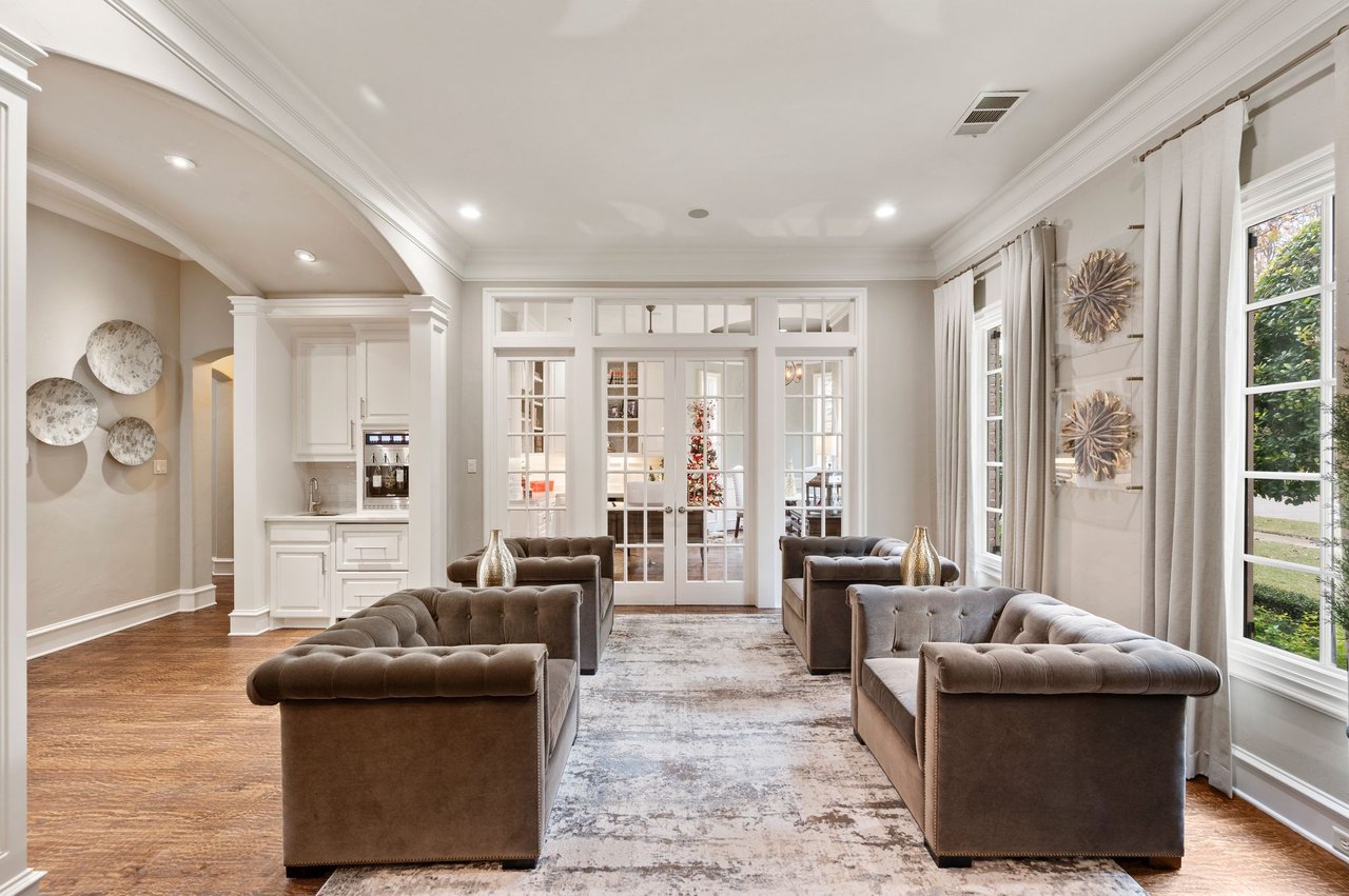 You won’t want to miss this exceptional home in sought-after Westmont, ideally located next to a green space for added privacy. Step inside to soaring ceilings, a stunning spiral staircase & hardwood floors throughout. The home features a well-appointed executive office accented by elegant French doors & a generous closet, cabinet storage & built in shelving. The striking rotunda provides an ideal setting for a conference table & is surrounded by windows that flood the space with natural light. Thoughtfully designed for hosting, the home features Control4 and Sonos control systems & a dedicated lounge with an integrated self-service wine station & kegerator. The inviting living room with a decorative fireplace opens to a dramatic two-story, chef-caliber kitchen complemented by a Juliet balcony overlooking the space. Features include premium Sub Zero & Thermador appliances, Taj Mahal quartzite countertops, a gas cooktop, extensive built-in cabinets & counter space. Beyond the kitchen is the mud room featuring a built-in desk and a dedicated custom cabinet for gift wrapping & craft organization. The primary suite is conveniently located on the main level & features a Hollywood tub, a huge walk-in closet with built-in storage & a custom shoe wall with 124 shoe bin capacity. A guest suite is also conveniently located downstairs with access to the covered patio. Upstairs, you’ll find three bedrooms, each with its own ensuite bathrooms highlighted by walk-in closets. A spacious game room features a wet bar that flows to the media room. Two of the upstairs bedrooms are connected by a versatile flex space with built-in desks & cabinetry, perfect for studying or additional office spaces. Step outside to your private backyard oasis, highlighted by a sparkling pool with a spa & water feature. While the well-appointed outdoor kitchen & living area provides endless entertainment featuring an outdoor fireplace & ample space for seating & dining.